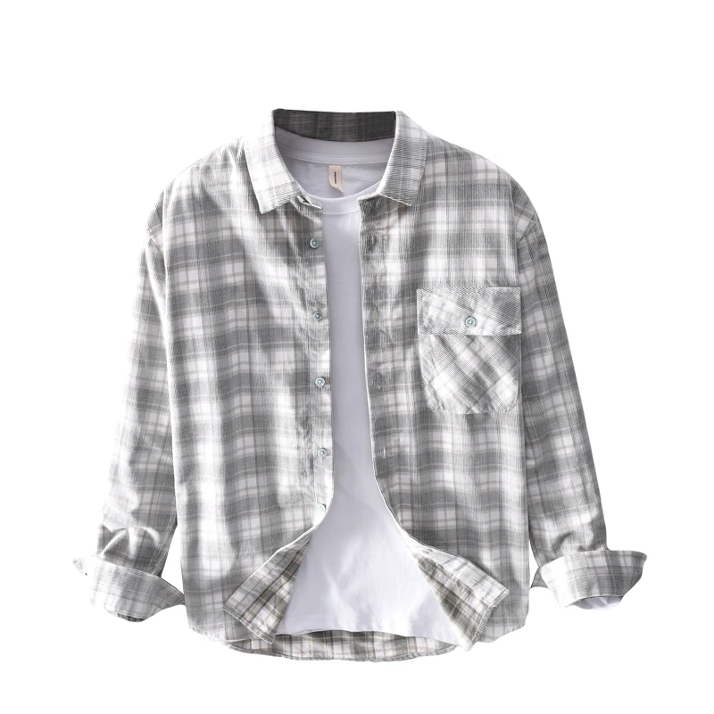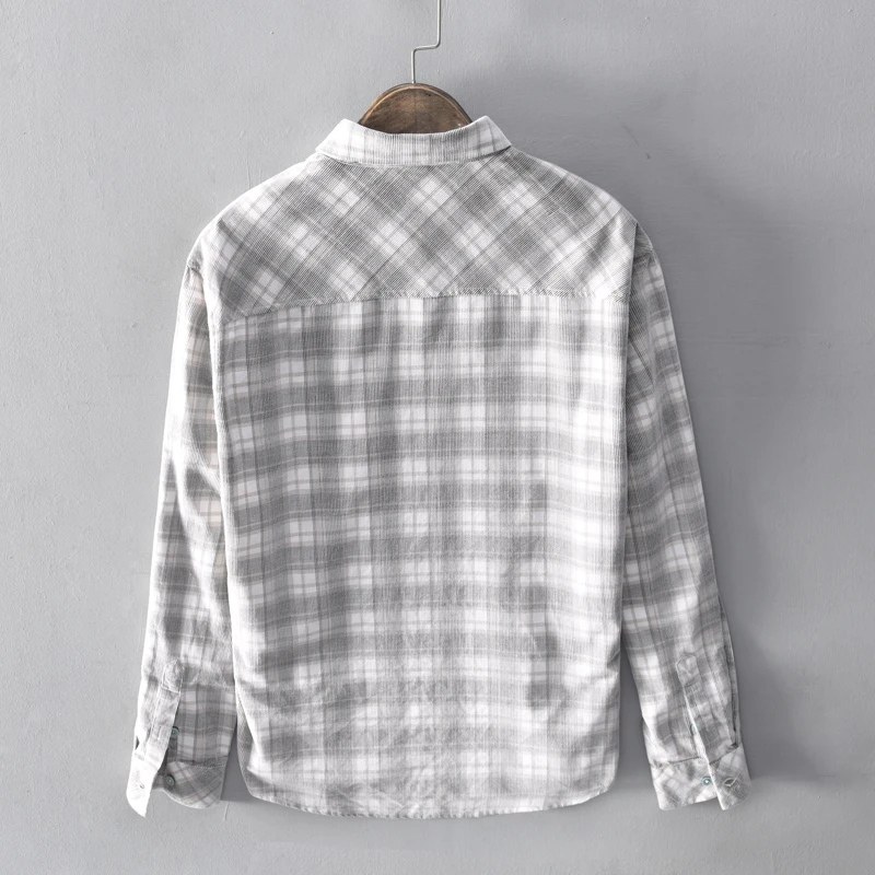 Good Chance for Spring Autumn Fashion Men Shirts Navy Blue Light Gray Casual Corduroy Shirts Men Vintage Designer Japanese Plaid Shirts Hombre