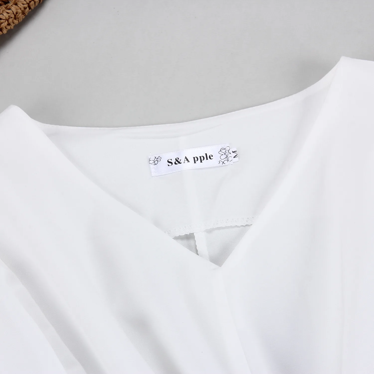 Addition Information of Summer V Neck Chiffon Shirt Lantern Sleeve Elastic Women Simple White Blouse Ladies Comfy Casual Tops New 2020 Blusa Feminina