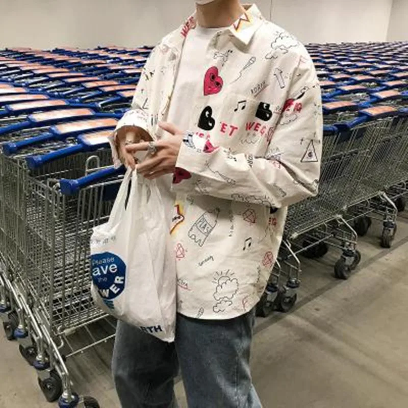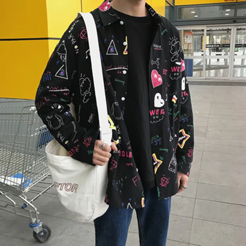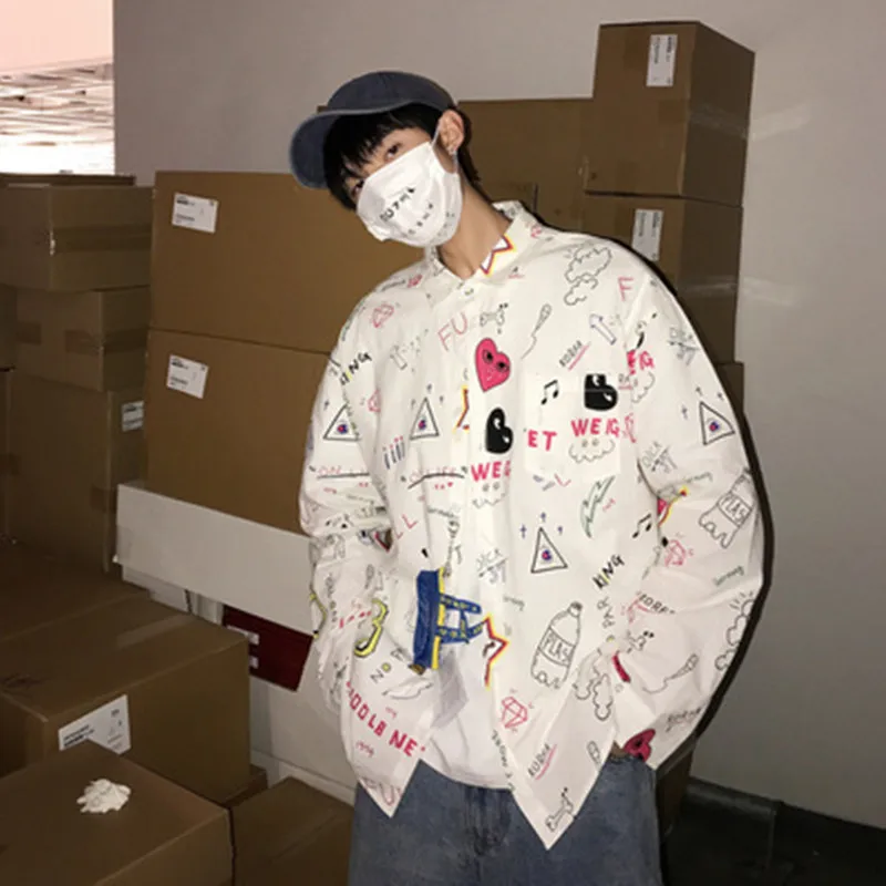 If You want to buy for Shirts, then Trendy printed shirt INS Han Fan 2020 spring and summer long-sleeved shirt graffiti whole men new may be make you love