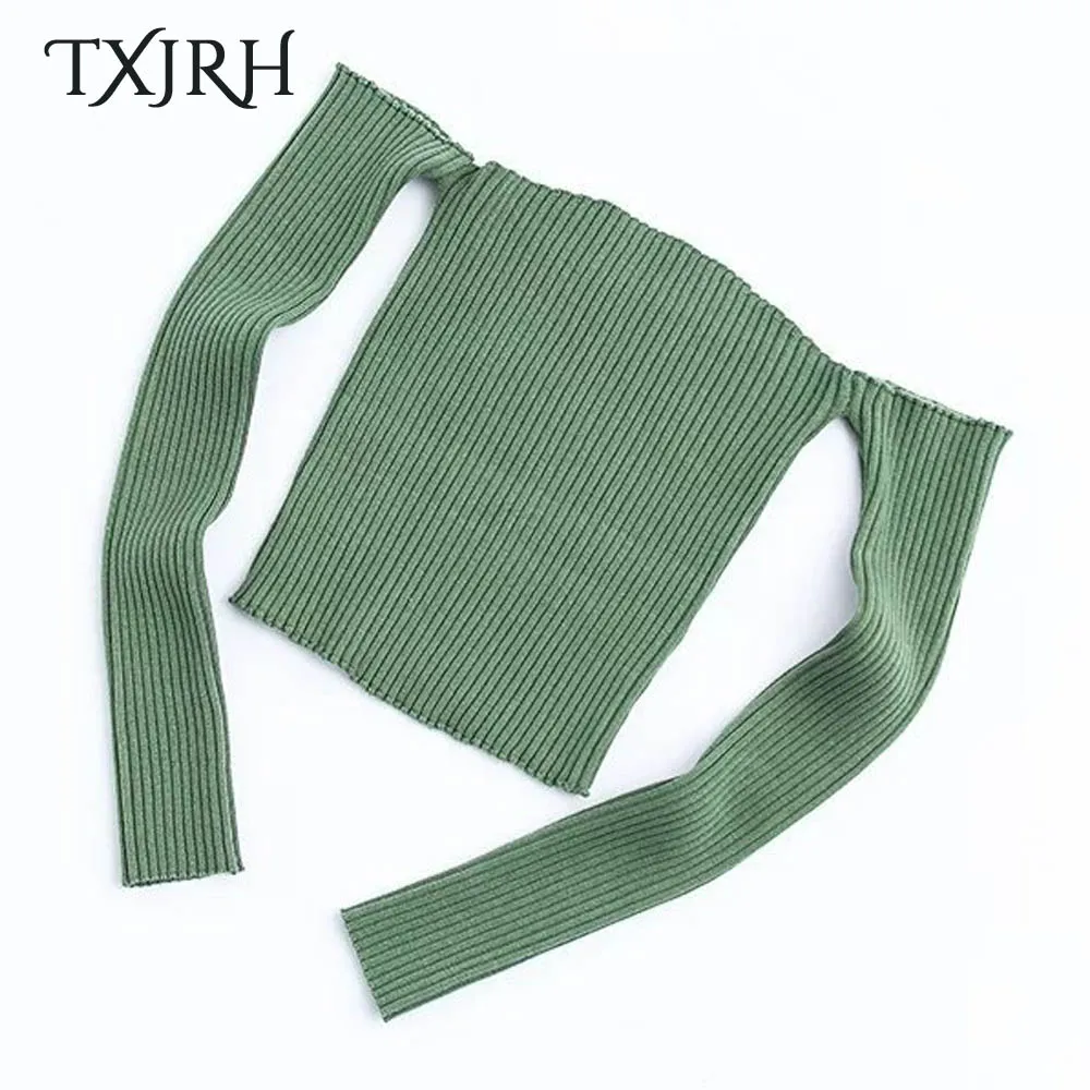 Cheap TXJRH Sexy Knitted Sweater Off Shoulder Slash Neck Pullover Long Sleeve Slim Knitwear Jumper Fashion Women Casual Tops 4 Colors Free Shipping