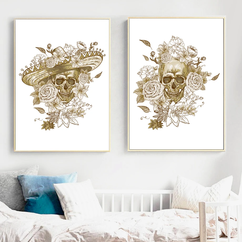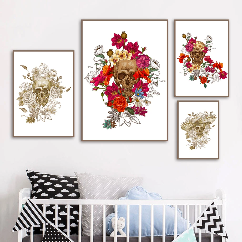 Best Abstract Surrealism Skull Flower Wall Art Canvas Painting Nordic Posters And Prints Wall Pictures For Living Room Home Decor Free Shipping