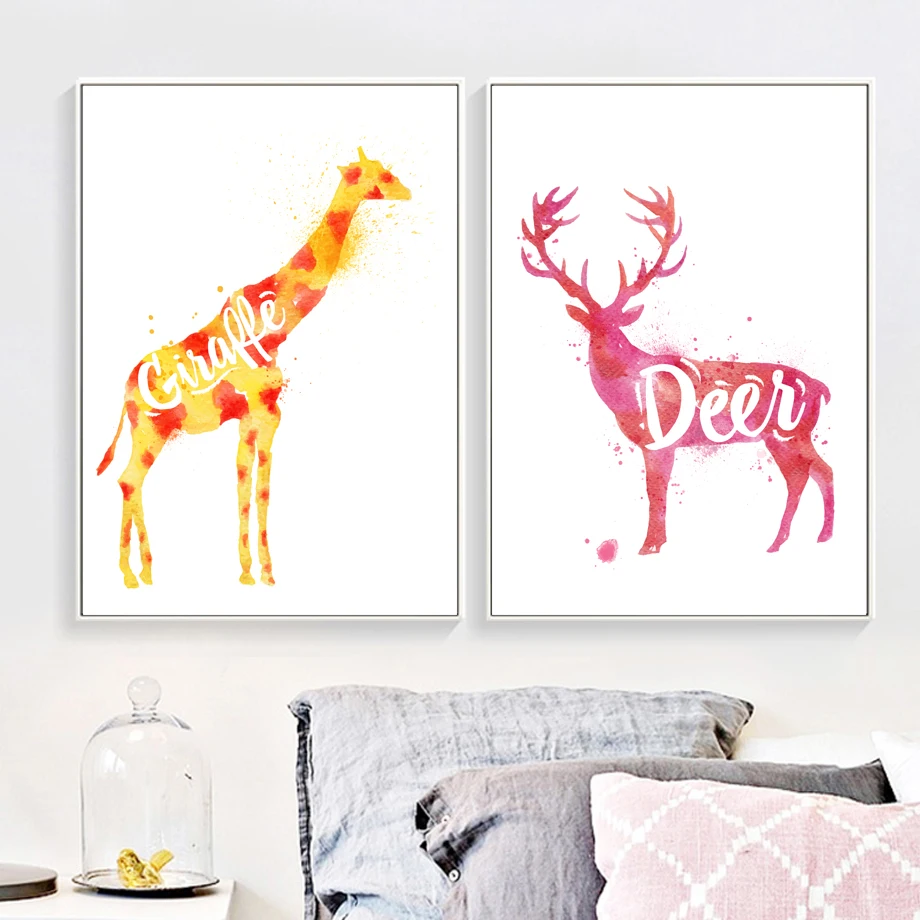 .Gallery for Color Lion Wolf Deer Kangaroo Wall Art Canvas Painting Nordic Posters And Prints Animal Wall Pictures For Living Room Decor
