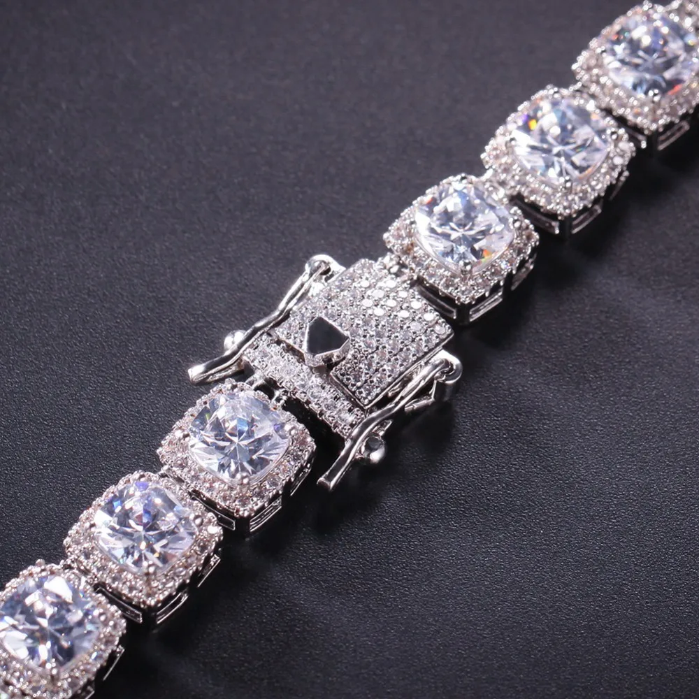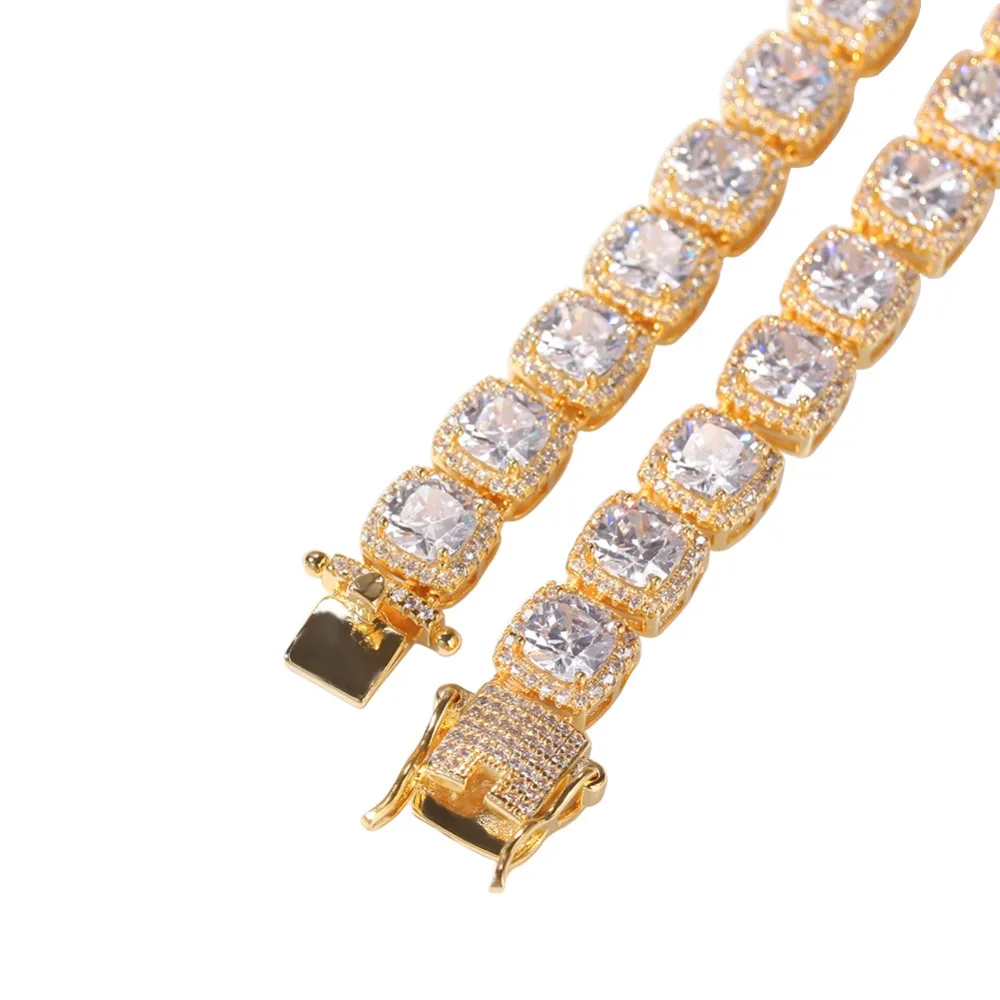 20cm Iced Charm Bracelet Square Cubic Zirconia Hiphop Gold Silver Color Mens Tennis Bracelets 10mm Bling Bling Fashion Jewelry