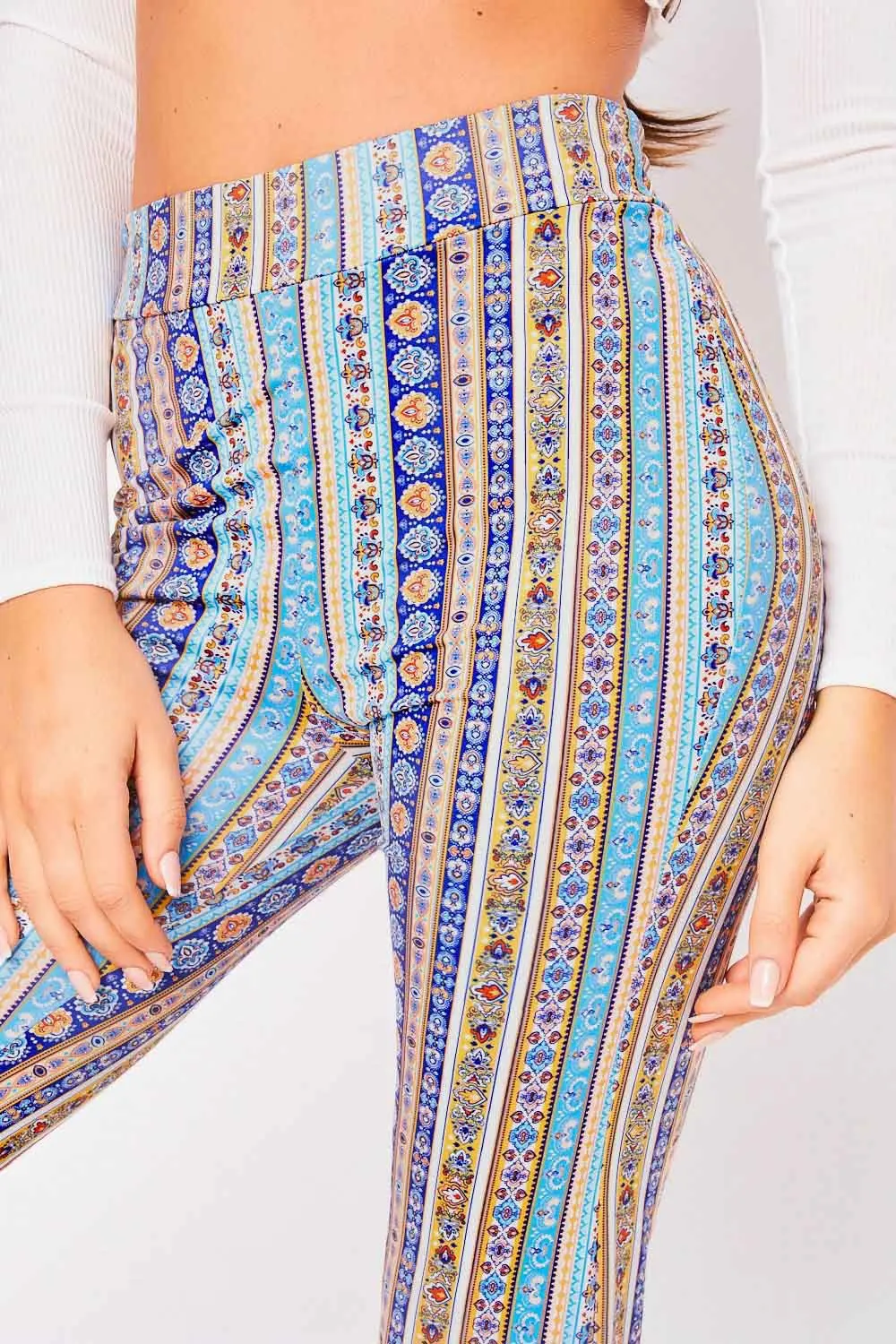 Cheap HOUZHOU Striped Printed Pants Women Boho Flare Pants for Women High Waist Trousers Women Vintage Pants Bell Bottom Ethnic Style Free Shipping