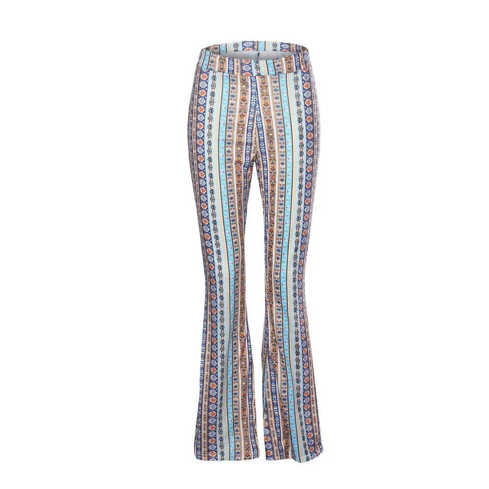 .Gallery of HOUZHOU Striped Printed Pants Women Boho Flare Pants for Women High Waist Trousers Women Vintage Pants Bell Bottom Ethnic Style