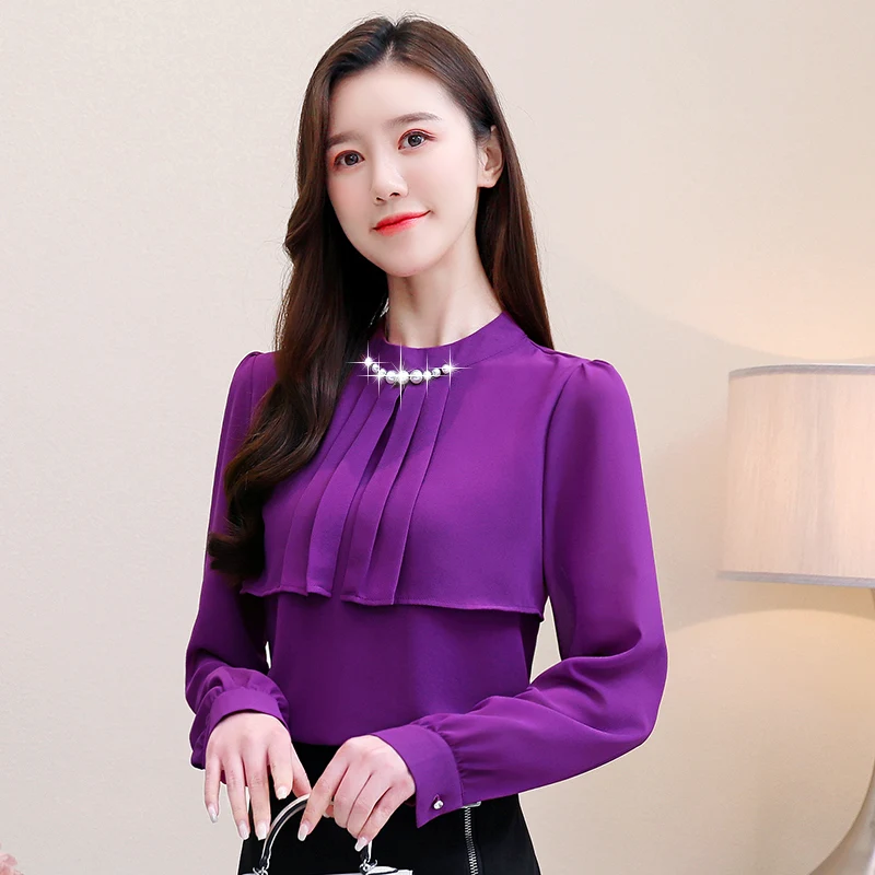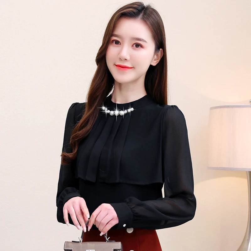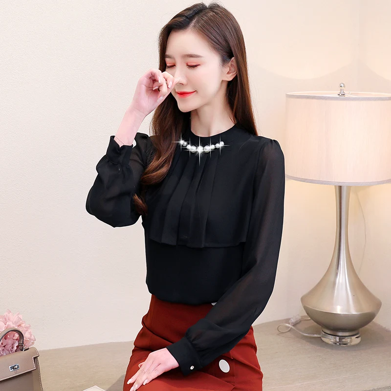 .Pictures for Korean Fashion Chiffon Women Blouses Women Beading Shirt Tops Plus Size Woman Long Sleeve Ruffle Blouse Top Blusas Mujer De Moda