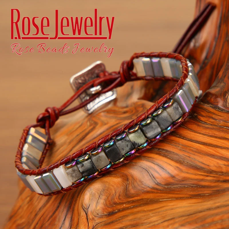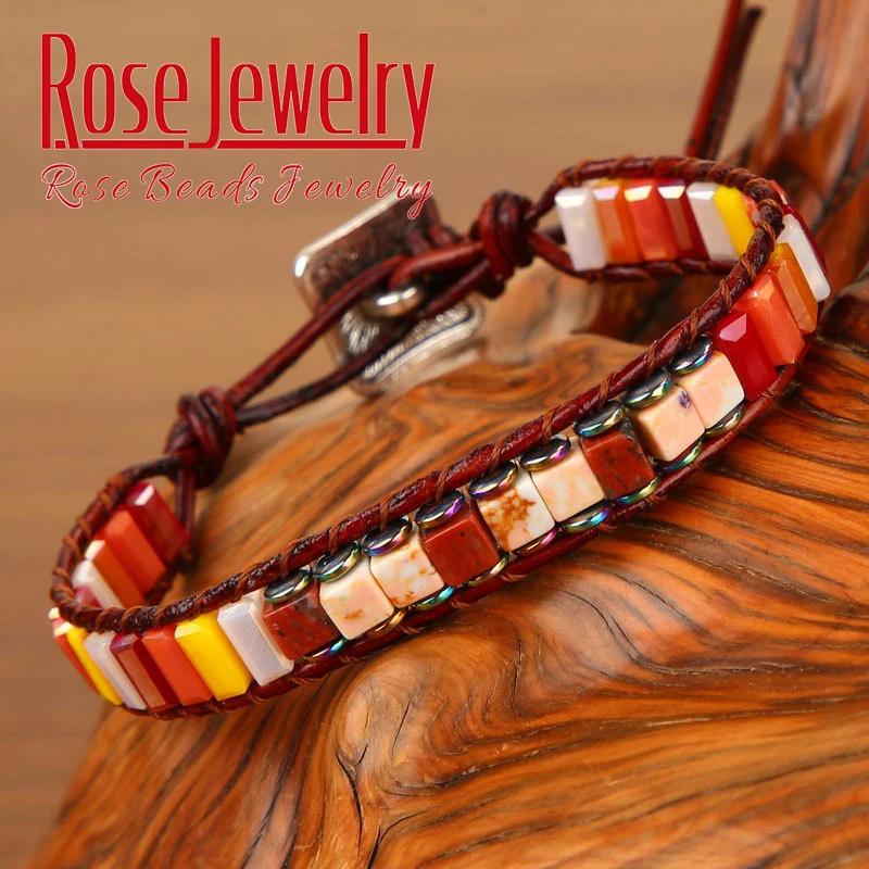 Offer Description for Natural Stone Handmade Multi Color Chakra Bracelet Jewelry Tube Beads Leather Wrap Bracelet Creative Gifts Couples Bracelets