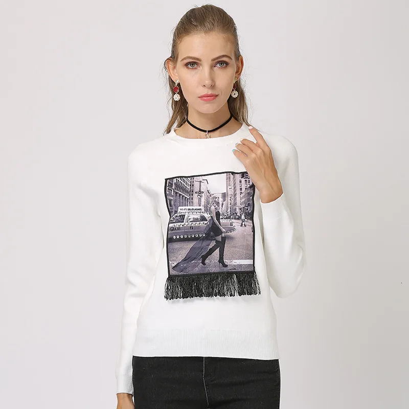 .Images for New Autumn Winter Sweater Women Printed Casual Ladies Knitted Pullovers Round Neck Long Sleeve Tassel Jumpers 2020 Jersey Mujer