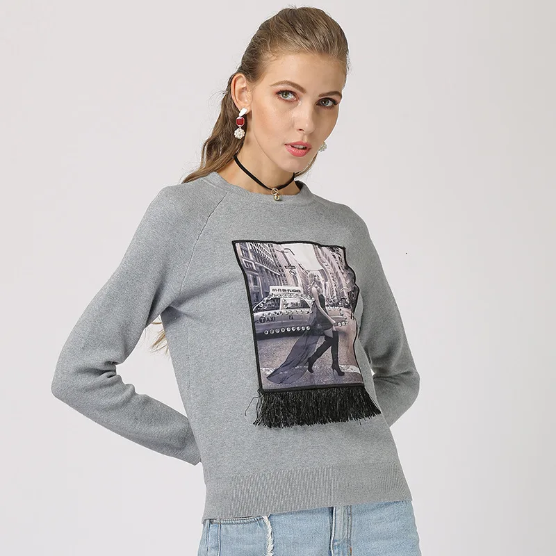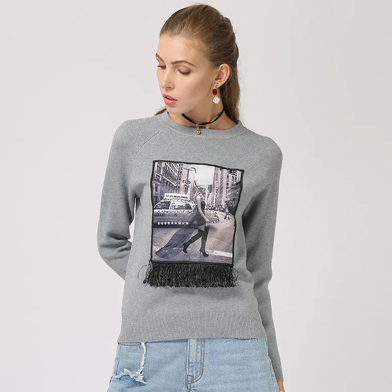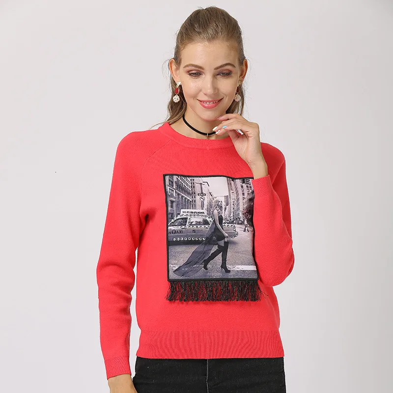 Price Description of New Autumn Winter Sweater Women Printed Casual Ladies Knitted Pullovers Round Neck Long Sleeve Tassel Jumpers 2020 Jersey Mujer
