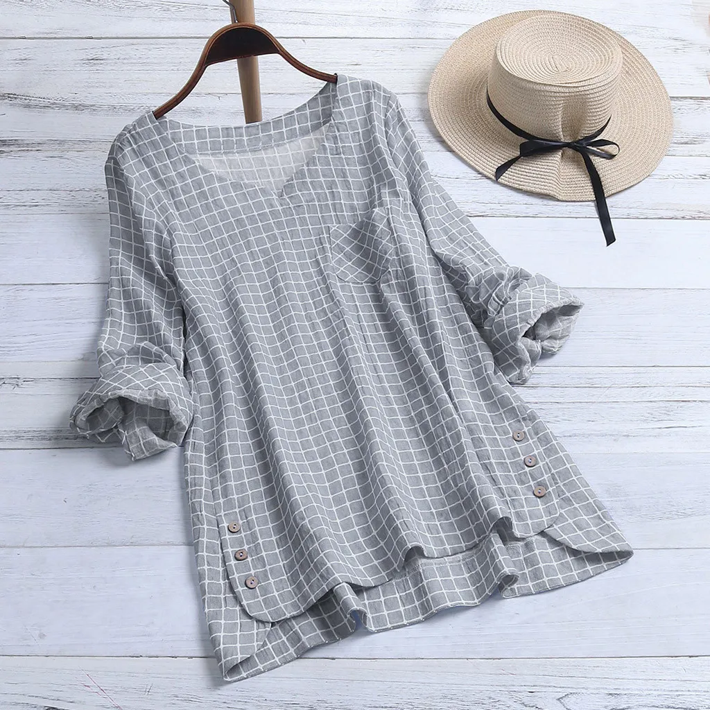 .Gallery of Plaid blouse Shirt Vintage Chiffon Long Sleeve women Tee Tops Casual Soft Loose Button Camisetas Hombre Plus Size