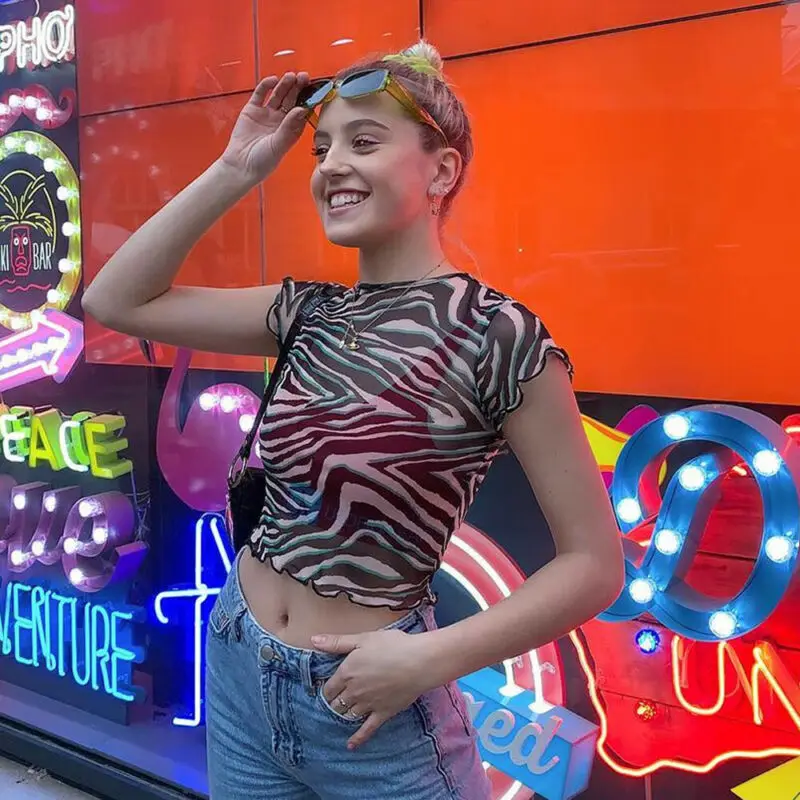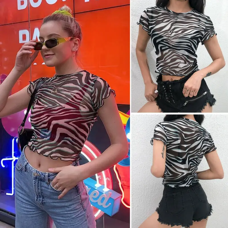 Limited Chance of 2020 Sexy Women Transparent Mesh Crop Tops Short Sleeve Bodycon Sexy Clubwear T-Shirt