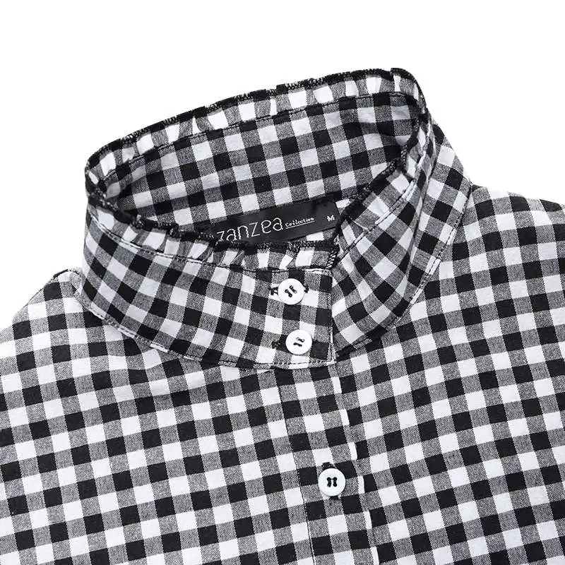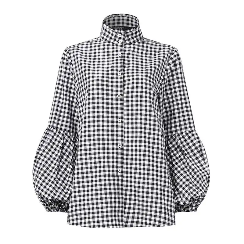 .Pictures for 2020 Spring Shirts ZANZEA Fashion Plaid Work Office Blouse Long Puff Sleeve Check Chemise Women Casual Tunic Tops Female Blusas