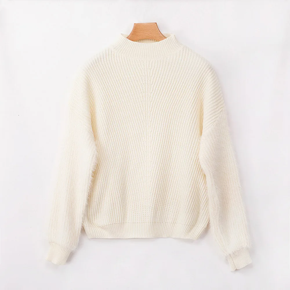 Addition Information of Autumn Winter Simple Casual Sweater Women Half High Collat Lanter Sleeve Ladies Loose Pullovers Female Knitted Jumpers Sweterki