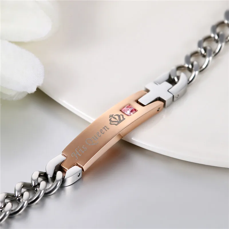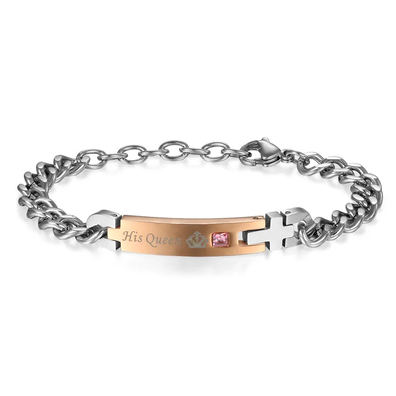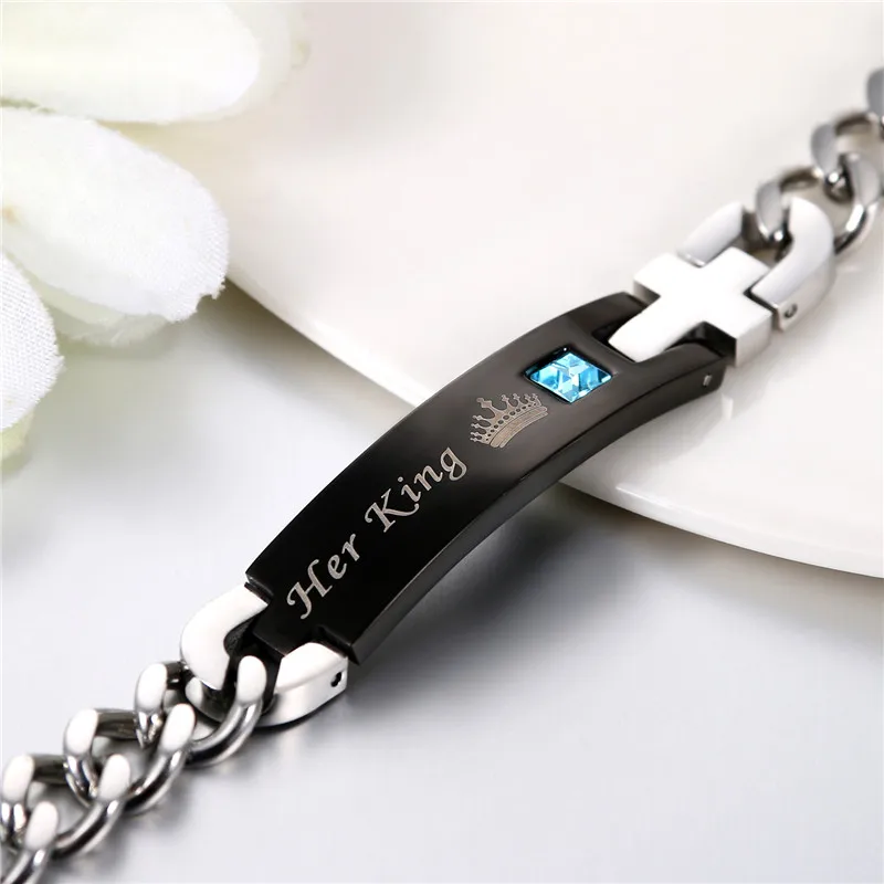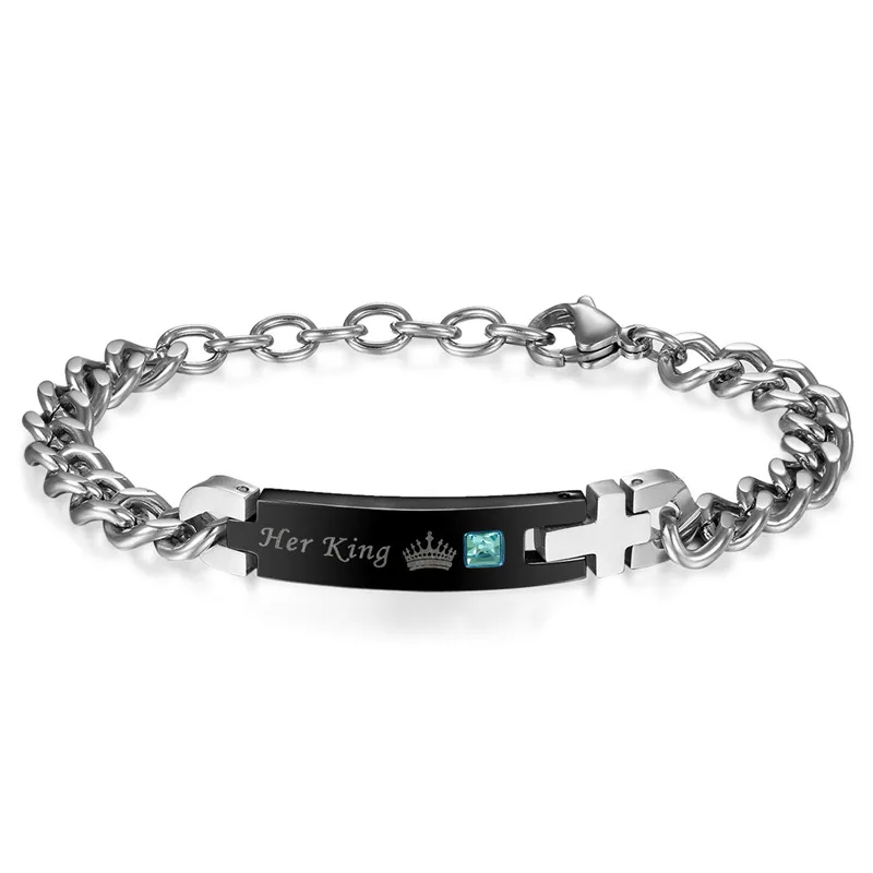 Best Boniskiss Self Design Unique Gift For Lover "His Queen""Her King " Couple Bracelets Stainless Steel Bracelets For Women Men Free Shipping
