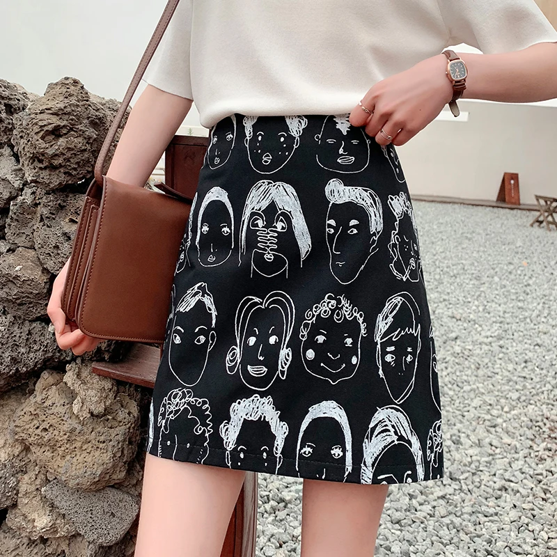 .Gallery of Comic Face Print Retro Skirt Comic Print High Waist A Line Skirt Women Fashion Bodycon Mini Skirts