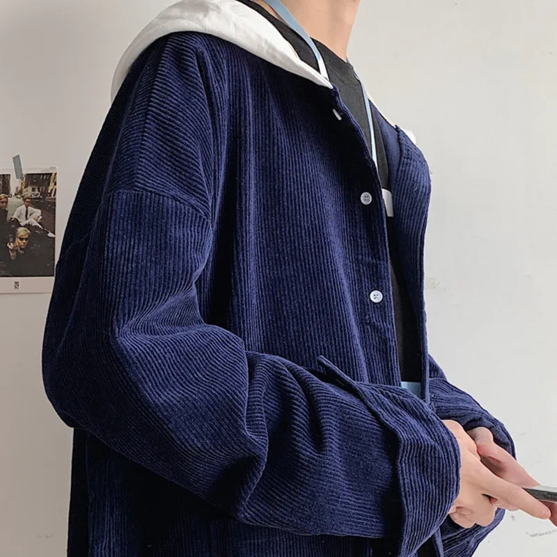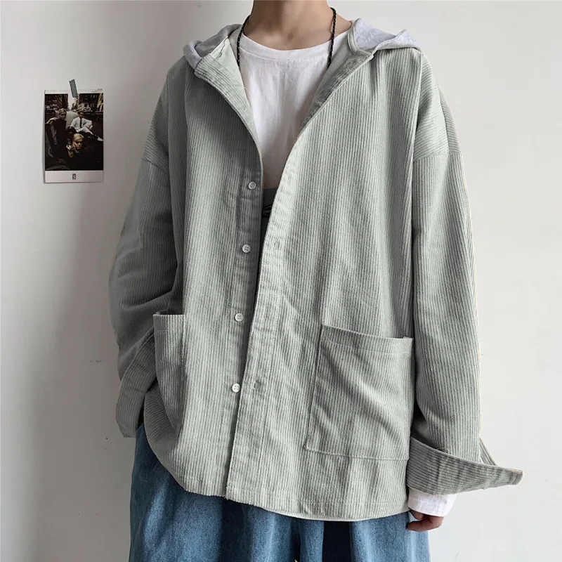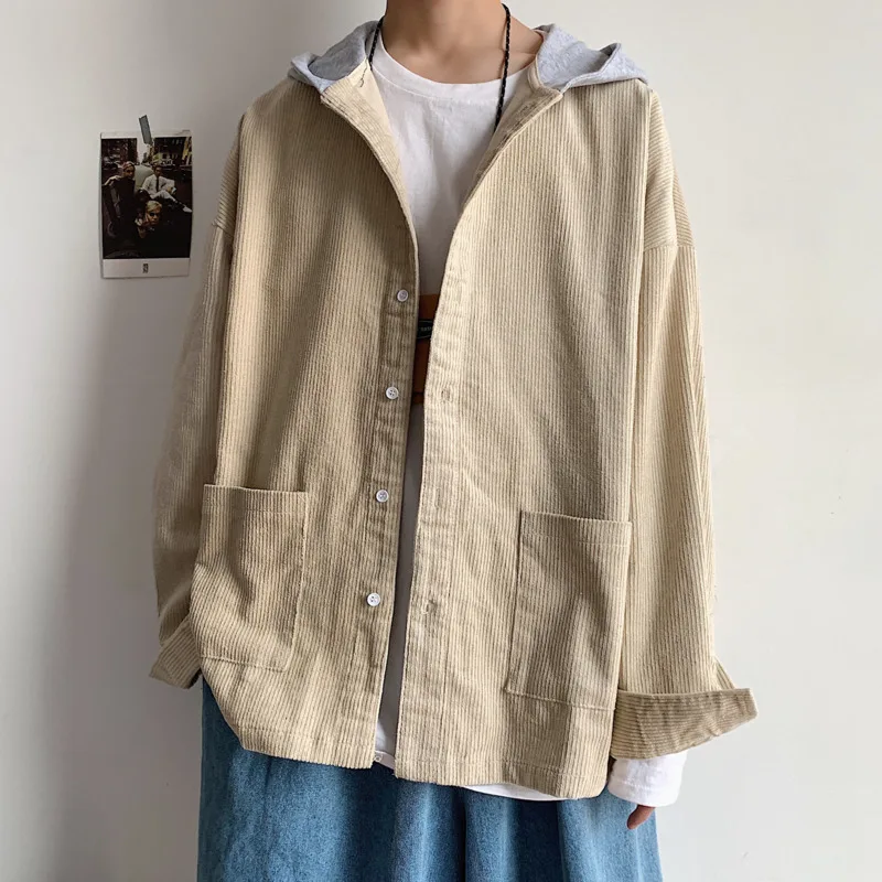 .Images for Corduroy Jacket Men's Fashion Solid Color Casual Hooded Jackets Mens Streetwear Hip Hop Loose Bomber Jacket Men Outwear M-5XL