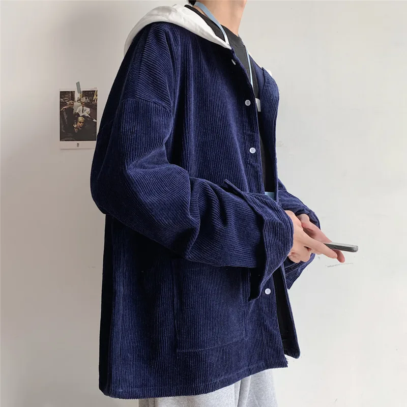 Offer Description of Corduroy Jacket Men's Fashion Solid Color Casual Hooded Jackets Mens Streetwear Hip Hop Loose Bomber Jacket Men Outwear M-5XL