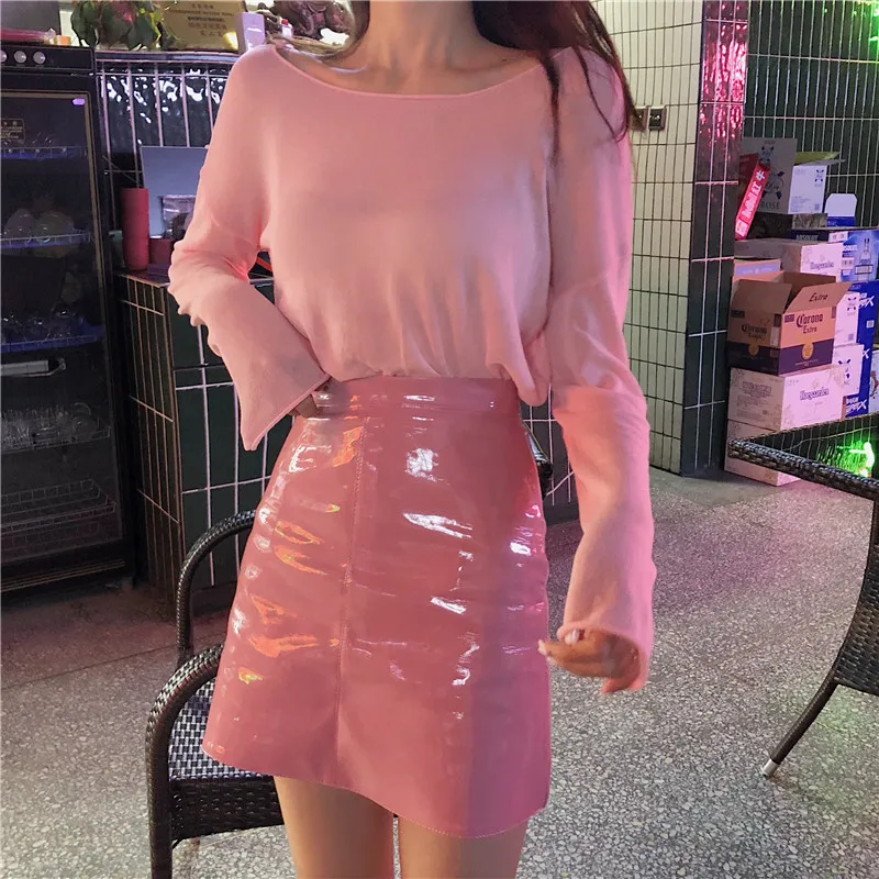 Offer Description of England Style 2020 Summer Fashion Women PU Solid Color Harajuku Casual Sexy Short Skirts Hight Waist Sweet Pink Mini Short Skirt