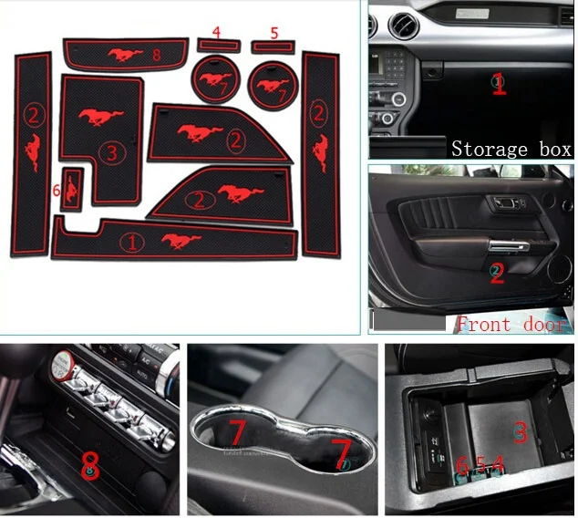 .Gallery for For Ford Mustang 2015-2017 Accessories,3D Rubber Car Mat Car Anti Slip Mat, Non-slip Mats Interior Door Pad/Cup Mat