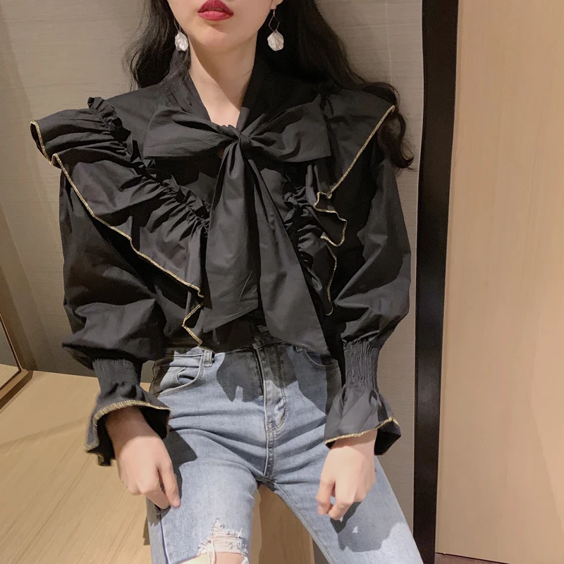 0 Response to "Best French Style 2020 Spring New Blouse Sweet Ribbon Bandage Bow Collar Design Shirt Blusas Cute Puff Sleeve Loose White Shirt Free Shipping"