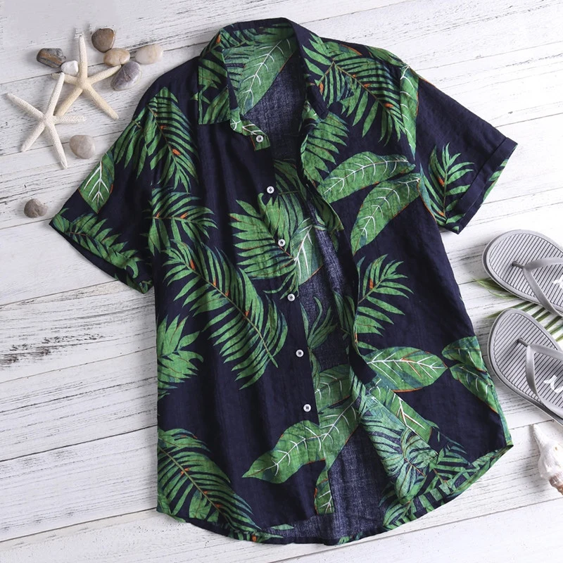 Addition Information of JESSIC Seaside Shirts Tropical Shirts Floral Summer Men Tops Casual Hawaiian Shirt Short Sleeve Cotton Lapel Button