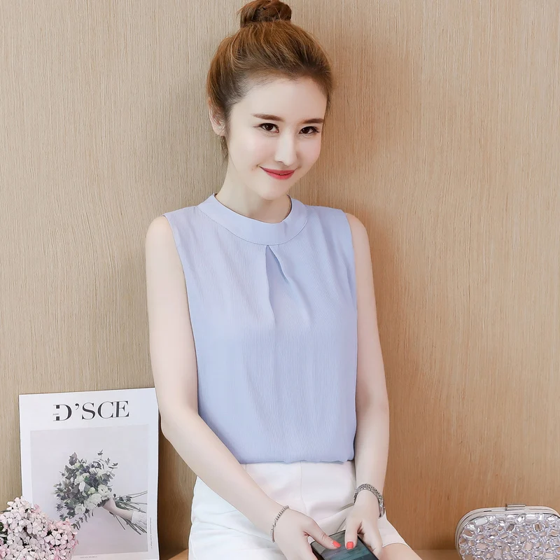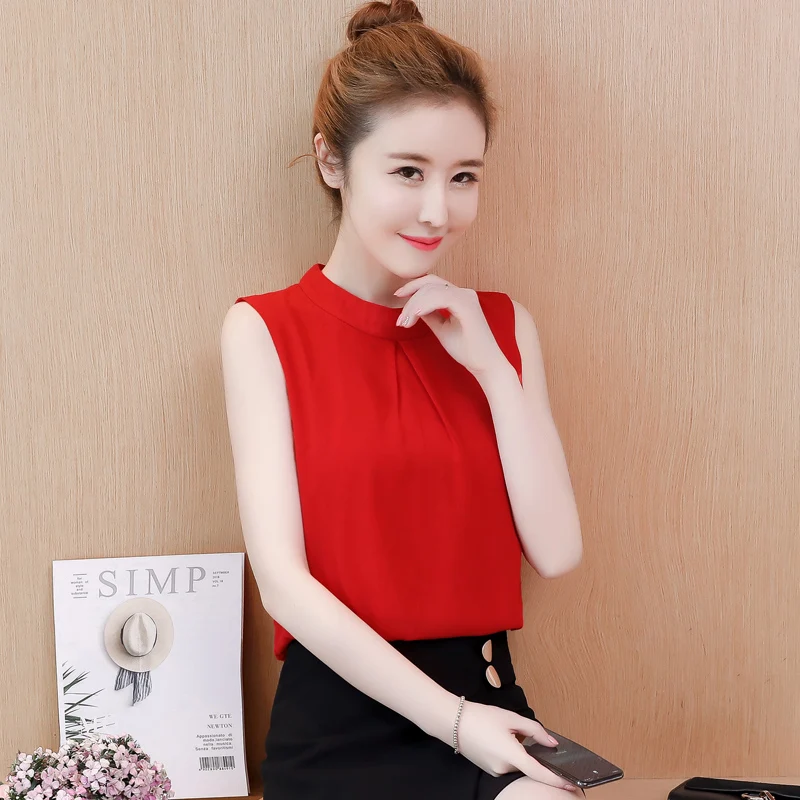 Best Korean Chiffon Blouses Women Sleeveless Shirt Plus Size Tops Blusas Mujer De Moda 2020 Woman Solid Blouse Top Summer Women Tops Free Shipping