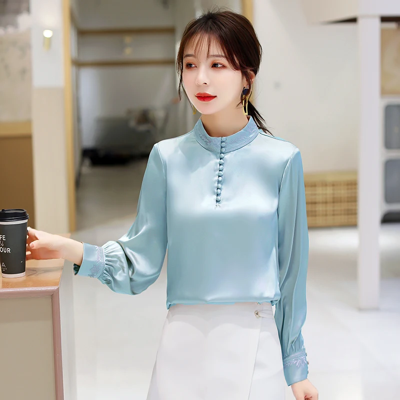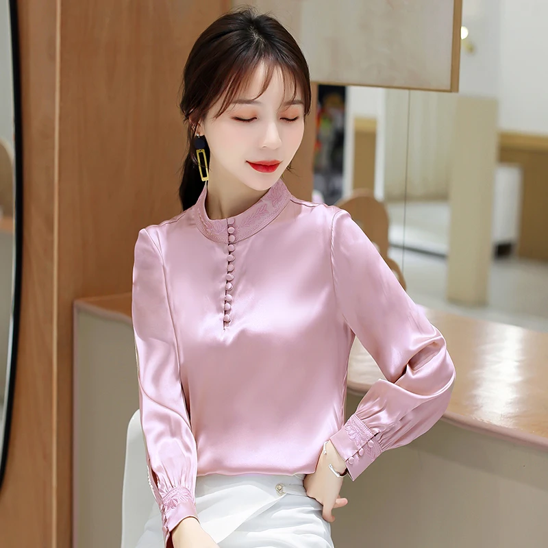 Best Korean Silk Women Blouses Women Satin Shirts Elegant Women Long Sleeve Blouse Shirt Plus Size Womens Tops and Blouses Harajuku Free Shipping