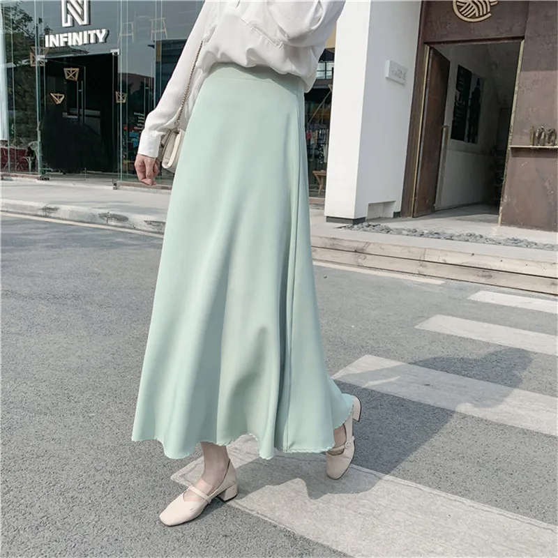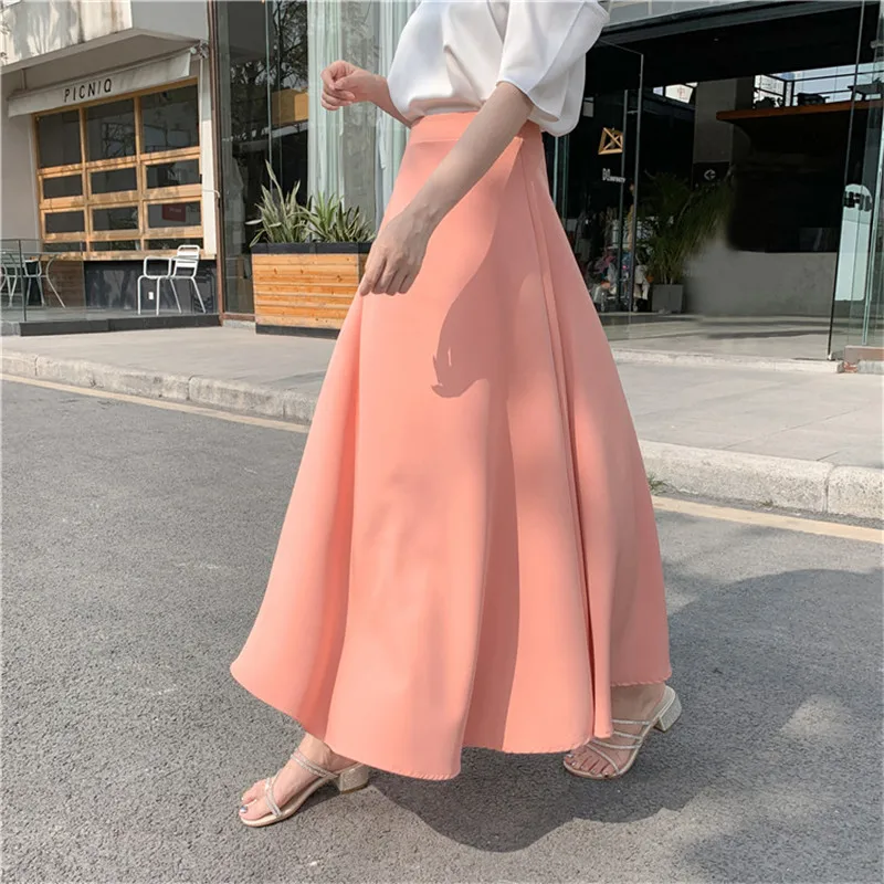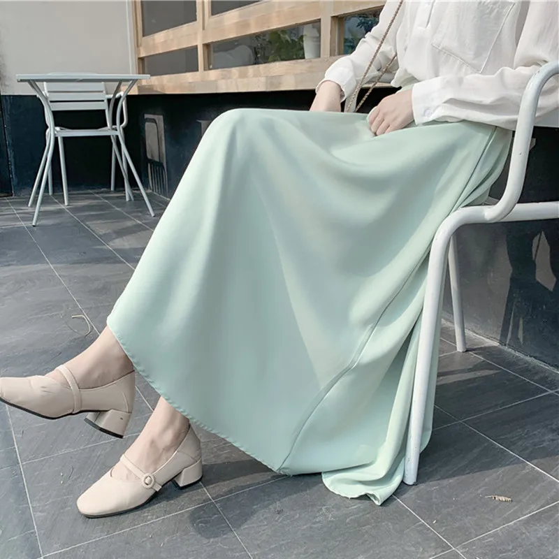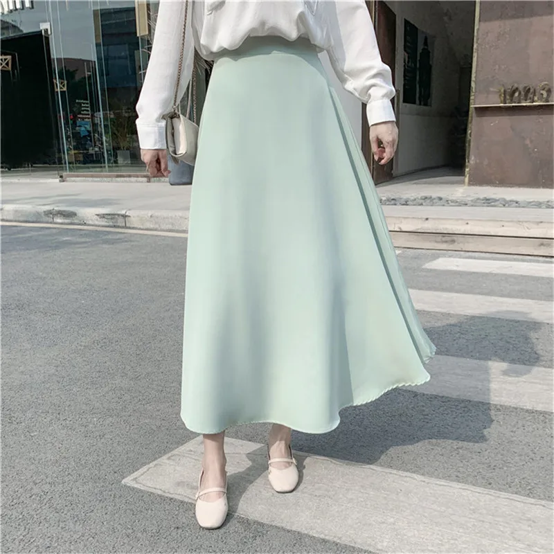 Best Korean Skirts Womens Elegant Chiffon Skirt Woman High Waist Skirts Plus Size Lady Solid A-line Long Midi Skirt Faldas Mujer Moda Free Shipping