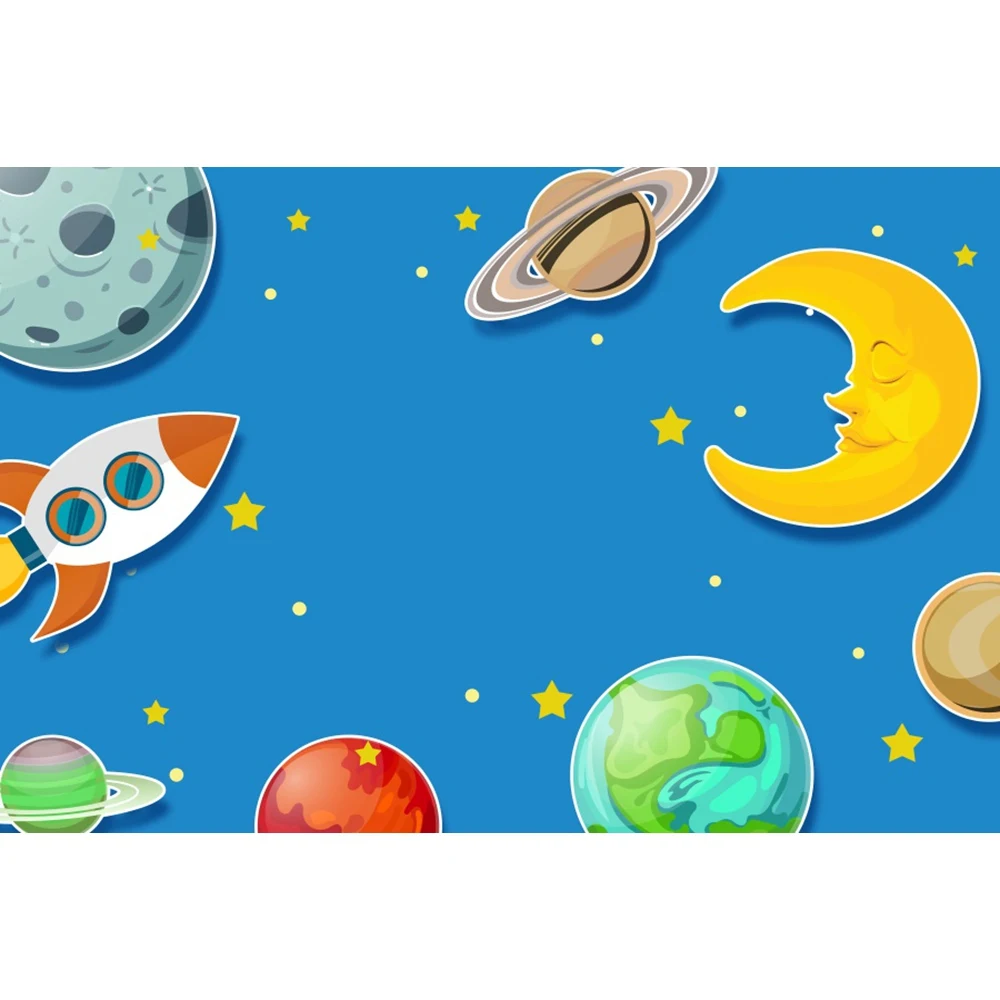 Offer Description of Laeacco Cartoon Spaceship Boy Birthday Party Photography Backgrounds Customized Photographic Backdrops For Photo Studio
