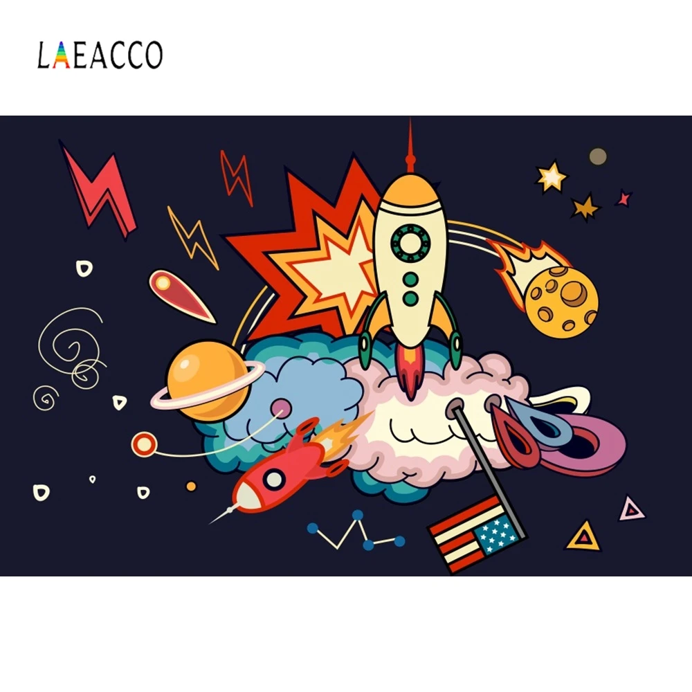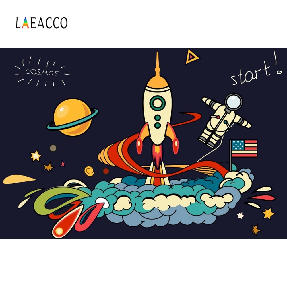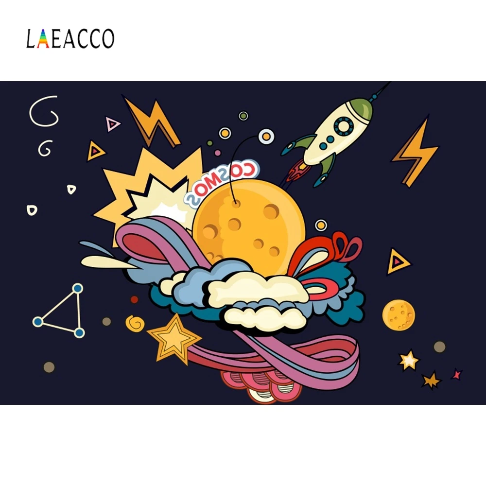 .Images of Laeacco Cartoon Spaceship Boy Birthday Party Photography Backgrounds Customized Photographic Backdrops For Photo Studio