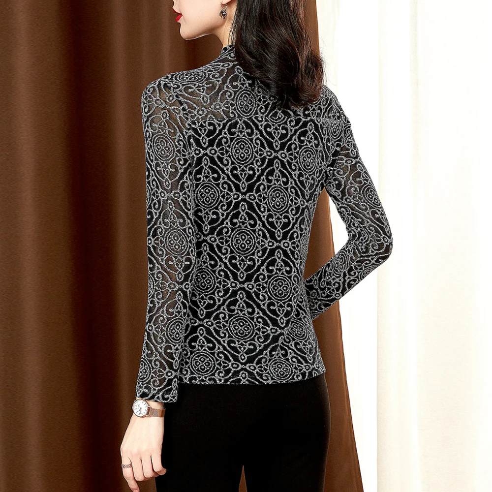 Best Mesh Hollow Out Bottoming Shirts Women Long-sleeved O-Neck 2020 Spring Summer New Tops Bright Silk Bronzing Slim Stretch Shirt Free Shipping