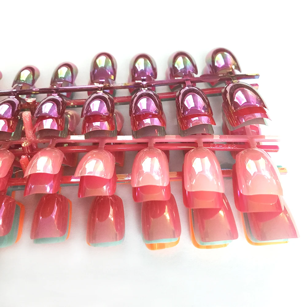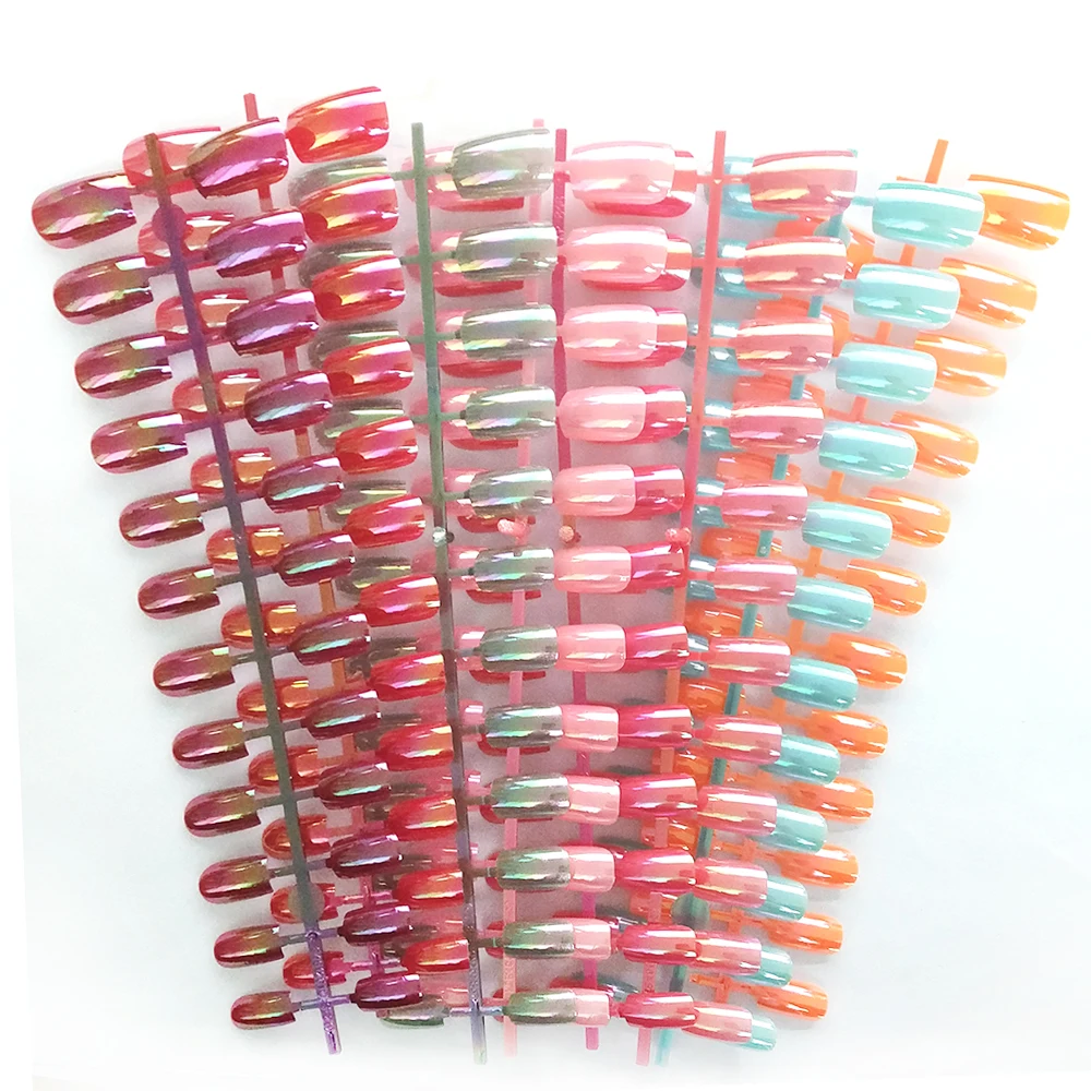 Offer Description for Metal fake nails 24pcs/bag 14 colors mirror reflective uv nail tips Square short long shape artificial nails
