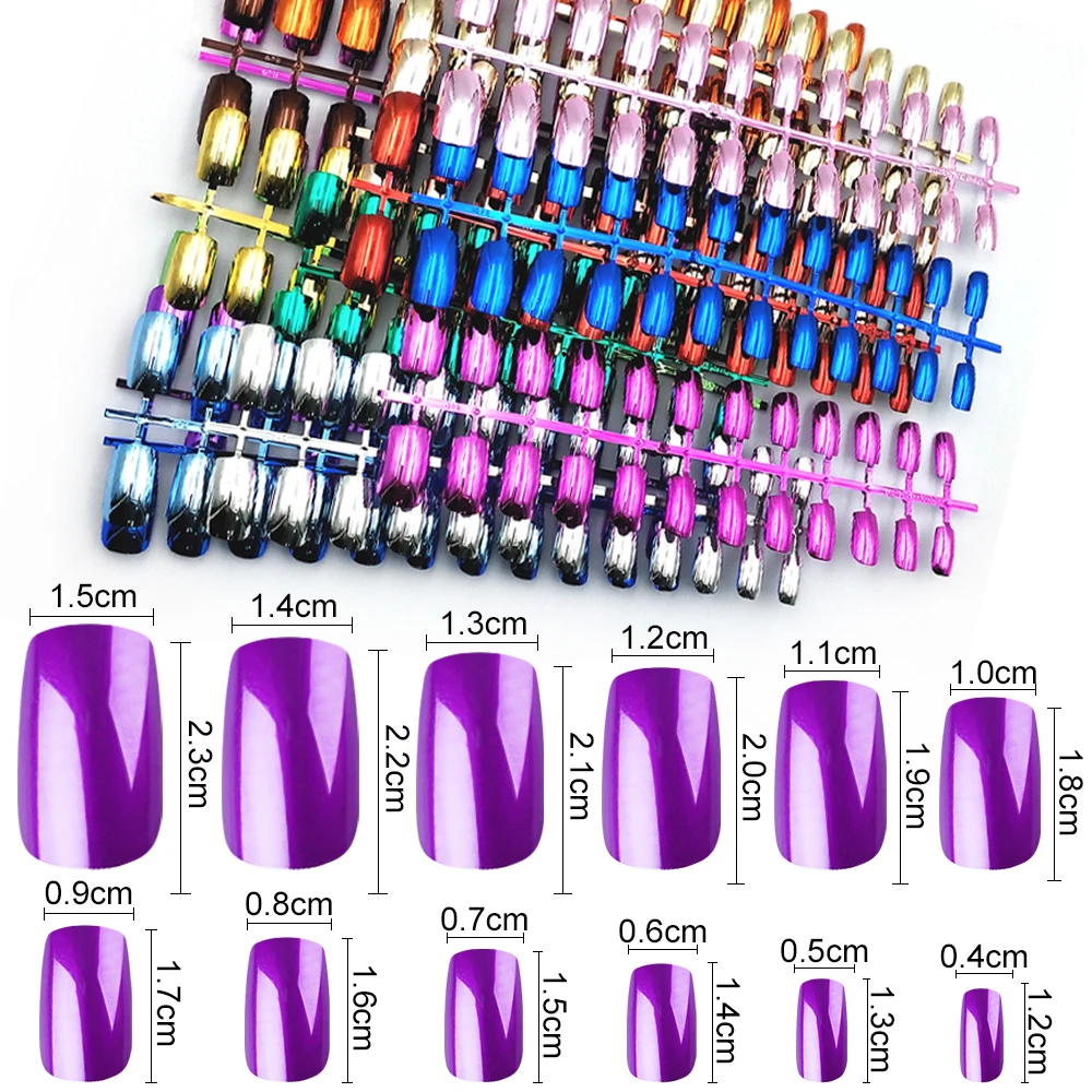 Addition Information of Metal fake nails 24pcs/bag 14 colors mirror reflective uv nail tips Square short long shape artificial nails