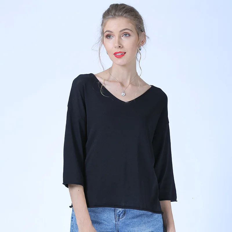 Chance Description of New Summer Simple V Neck Women Knitting Pullovers Ladies Casual Loose Jumpers Female Soft Tops Plain Color 2020 Roupa Feminina