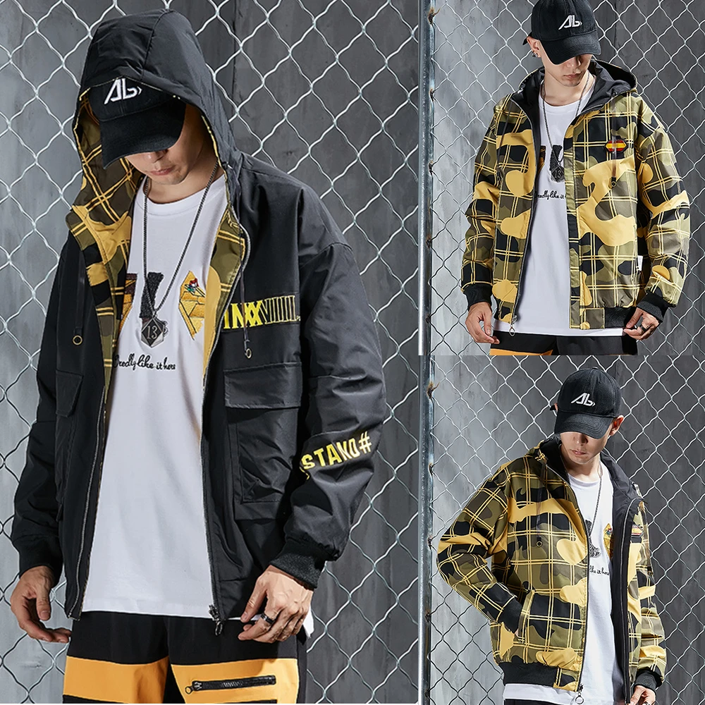 Best Reversible Hooded Jackets Streetwear Men's Windbreaker Clothes Male Camouflage Winter Coats Casual Brand Jackets Man 2020 Spring Free Shipping