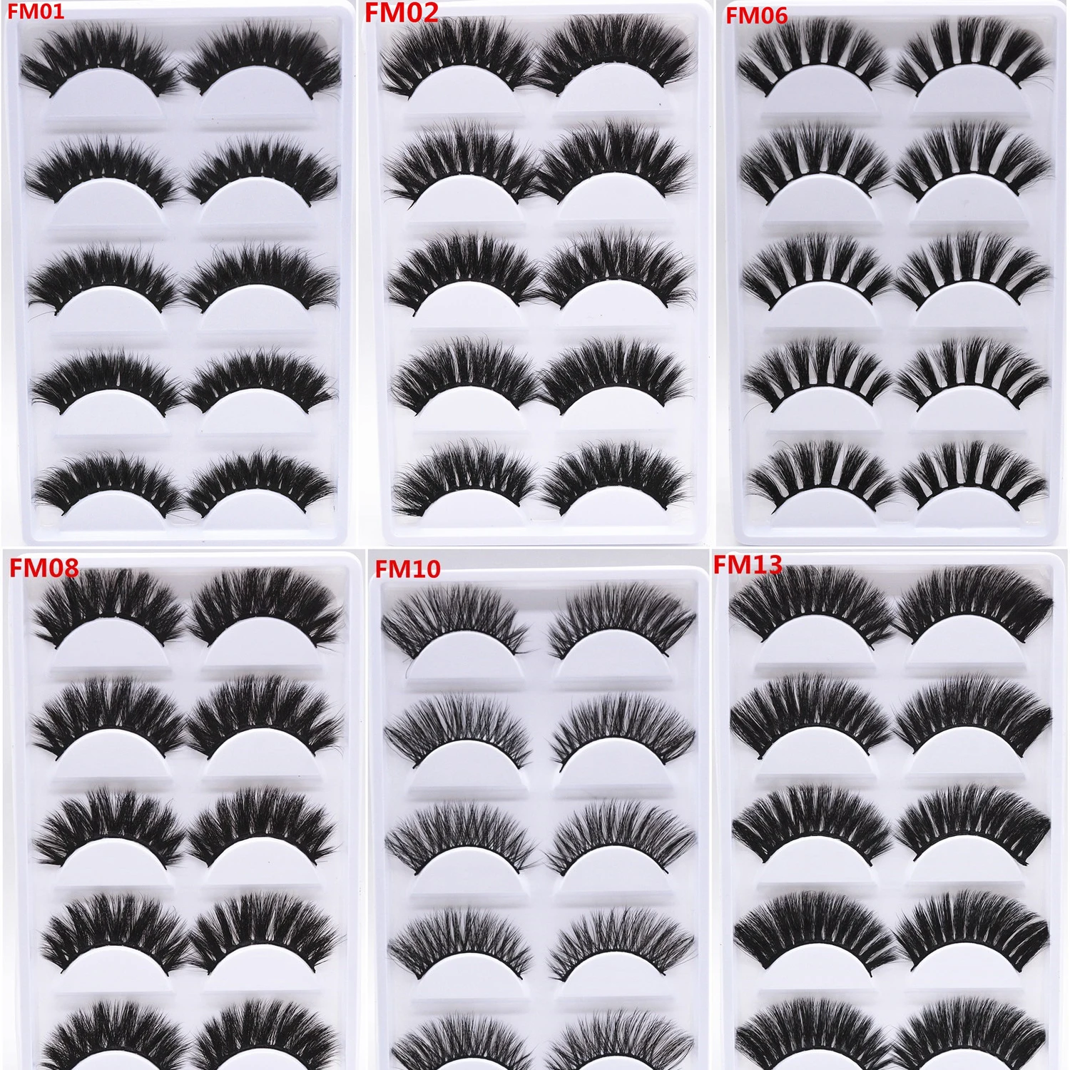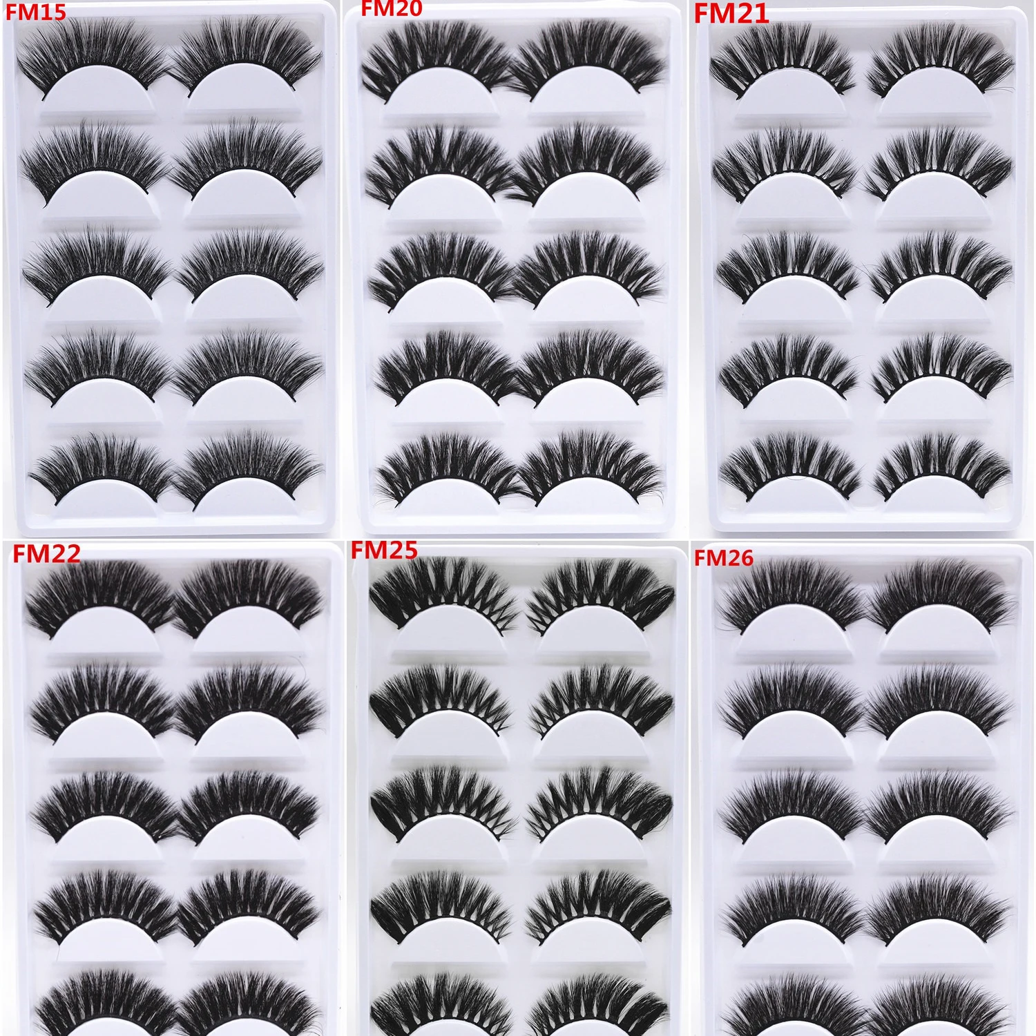 .Gallery for 5Pairs Mixed 3D Mink False Eyelashes Set Natural Beaty Wispy Fluffy Dramatic Fake Lashes Extension Handmade Eyelash