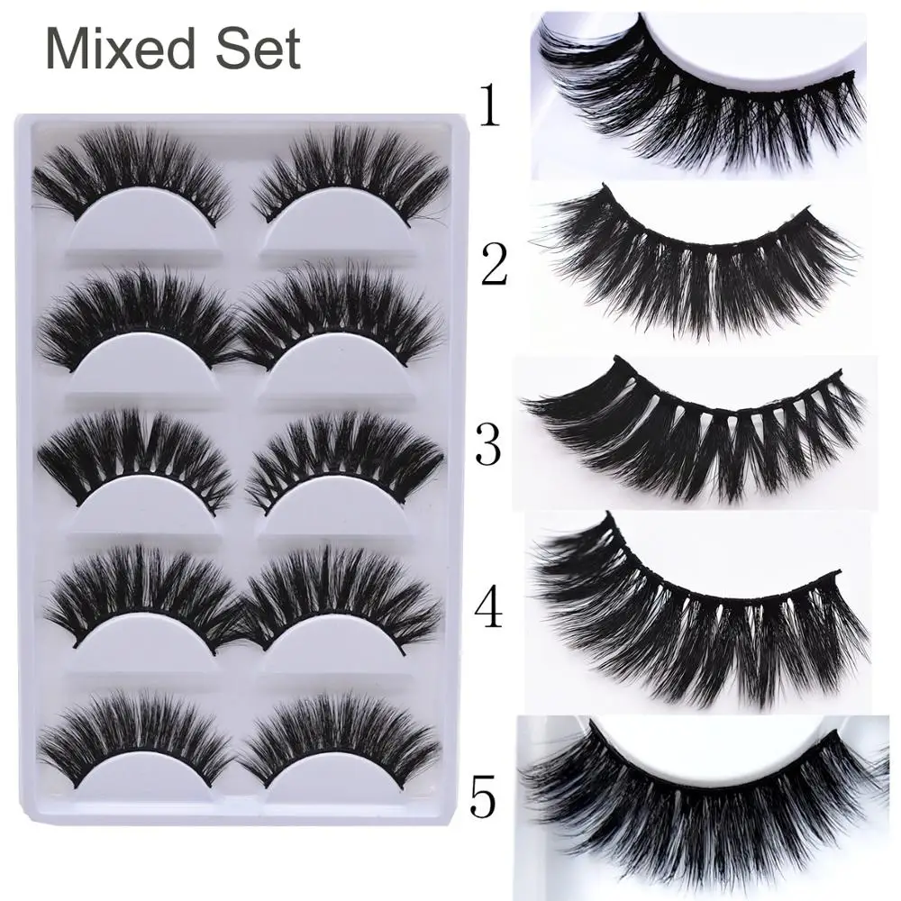 Offer Description of 5Pairs Mixed 3D Mink False Eyelashes Set Natural Beaty Wispy Fluffy Dramatic Fake Lashes Extension Handmade Eyelash