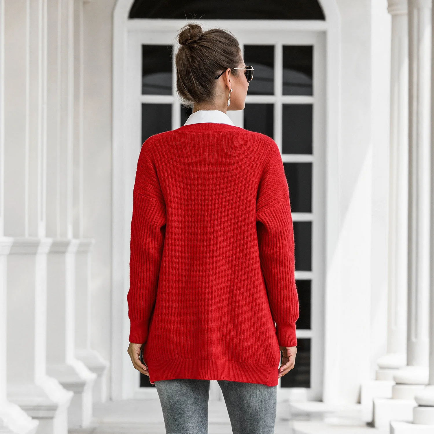 .Images for Autumn Winter Ladies Single-breasted Knitted Cardigan Mujer Women V Neck Simple Sweater Outwear Plain Color 2020 Jersey Mujer