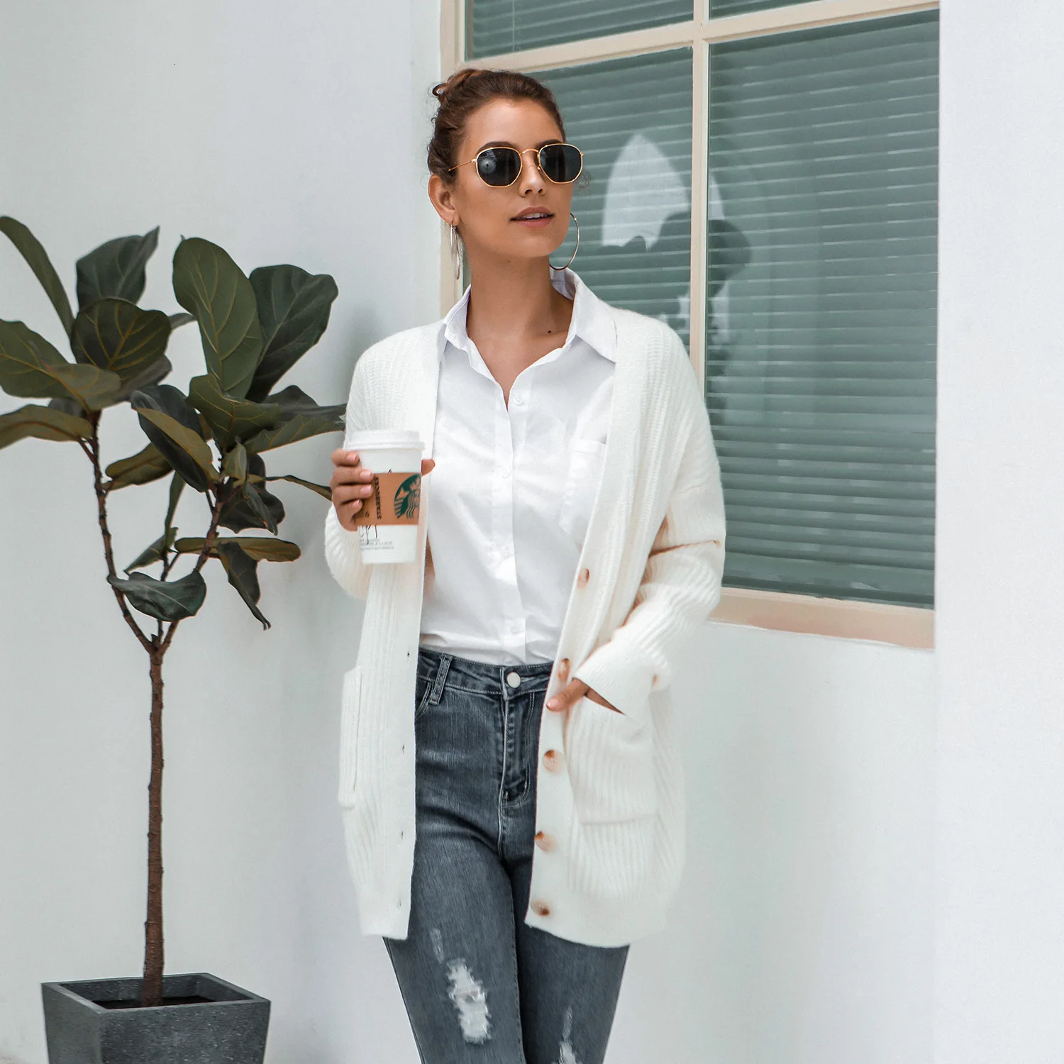 Price Description for Autumn Winter Ladies Single-breasted Knitted Cardigan Mujer Women V Neck Simple Sweater Outwear Plain Color 2020 Jersey Mujer