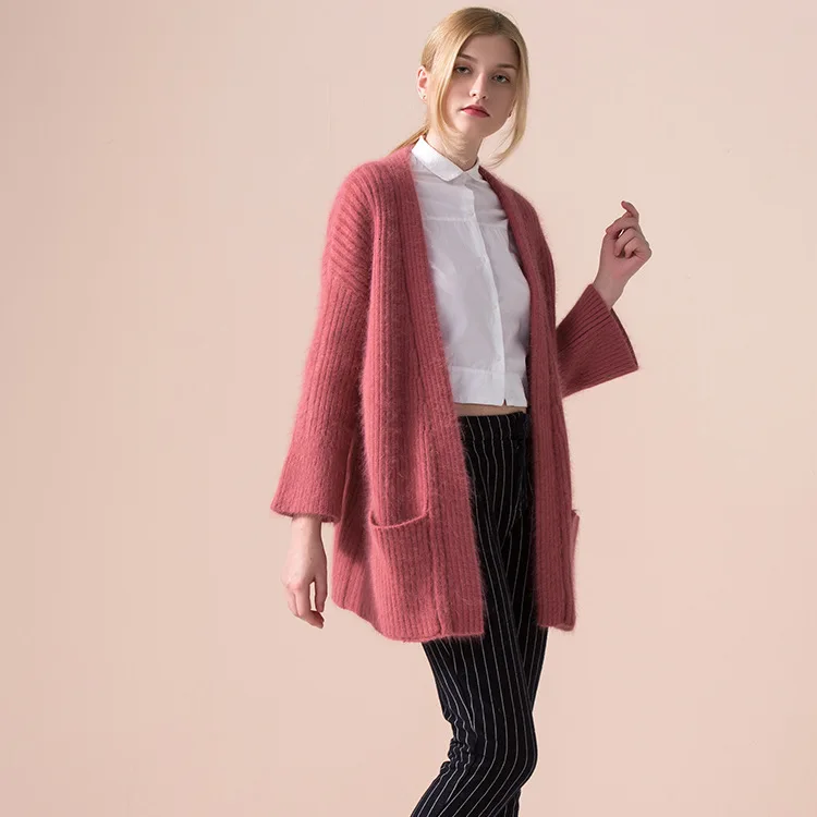 Chance Description for Autumn Winter Thick Sweater Women Pockets Long Sleeve Ladies Long Cardigans Plain Color Knitting Outwear 2020 Damen Strickjacke