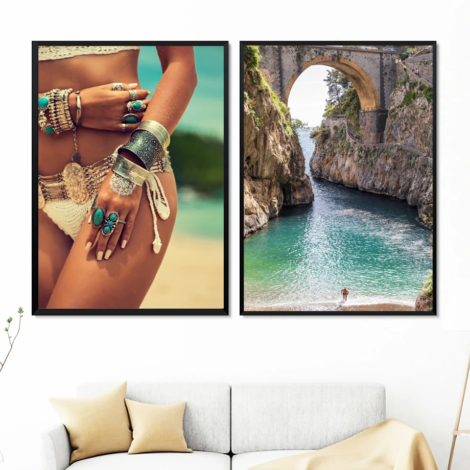 Offer Description for Beach Woman Ocean Coconut Island Sky Wall Art Canvas Painting Nordic Posters And Prints Wall Pictures For Living Room Home Decor