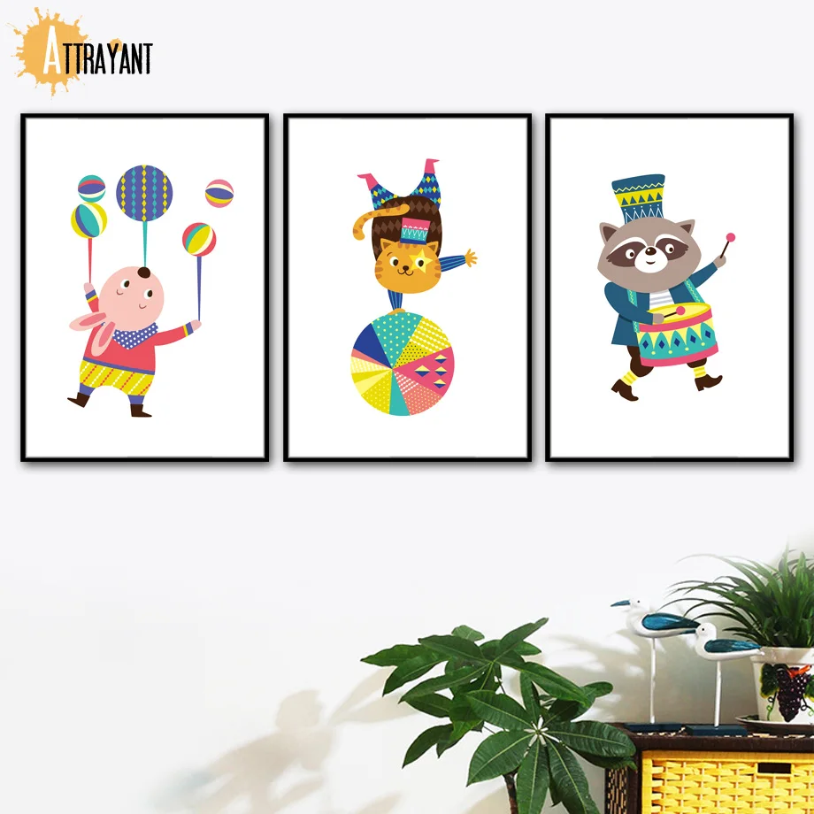 Cheap Circus Rabbit Cat Lion Wall Art Canvas Painting Nordic Poster And Prints Wall Pictures For Kids Bedroom Baby Boy Girl Room Decor Free Shipping