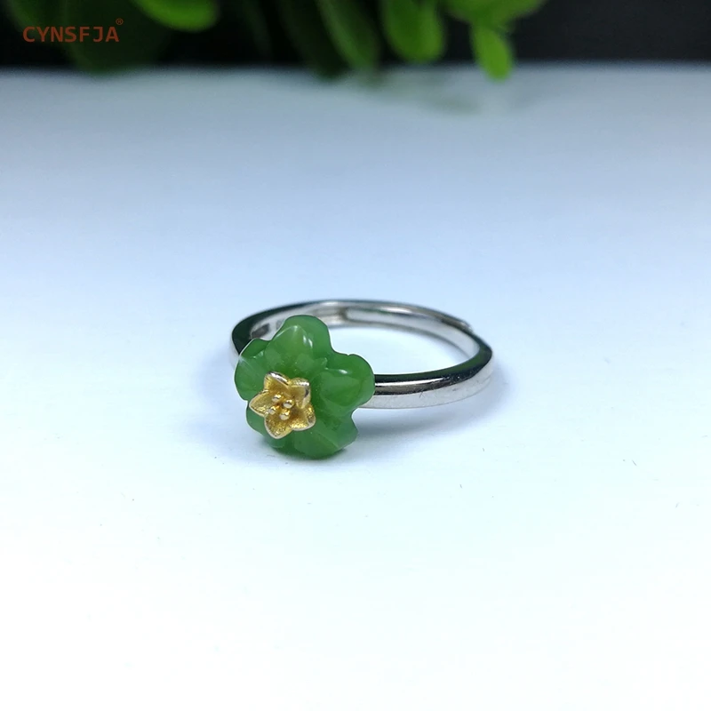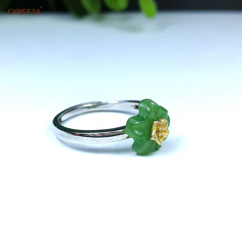 Cheap CYNSFJA New Real Certified Natural Hetian Jasper 925 Sterling Silver Amulet Green Jade Ring Hand Carved High Quality Best Gifts Free Shipping