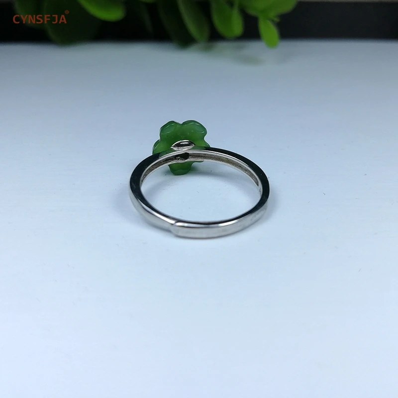 .Pictures for CYNSFJA New Real Certified Natural Hetian Jasper 925 Sterling Silver Amulet Green Jade Ring Hand Carved High Quality Best Gifts