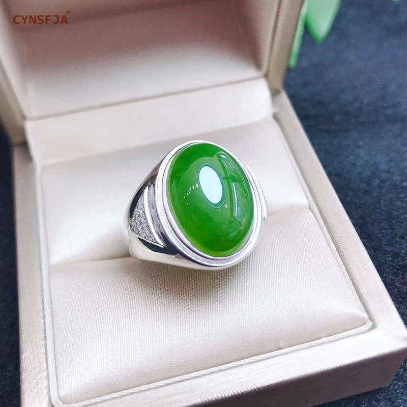 .Gallery of CYNSFJA Real Certified Natural Hetian Jade Jasper 925 Sterling Silver Lucky Men's Amulets Green Jade Ring High Quality Best Gift