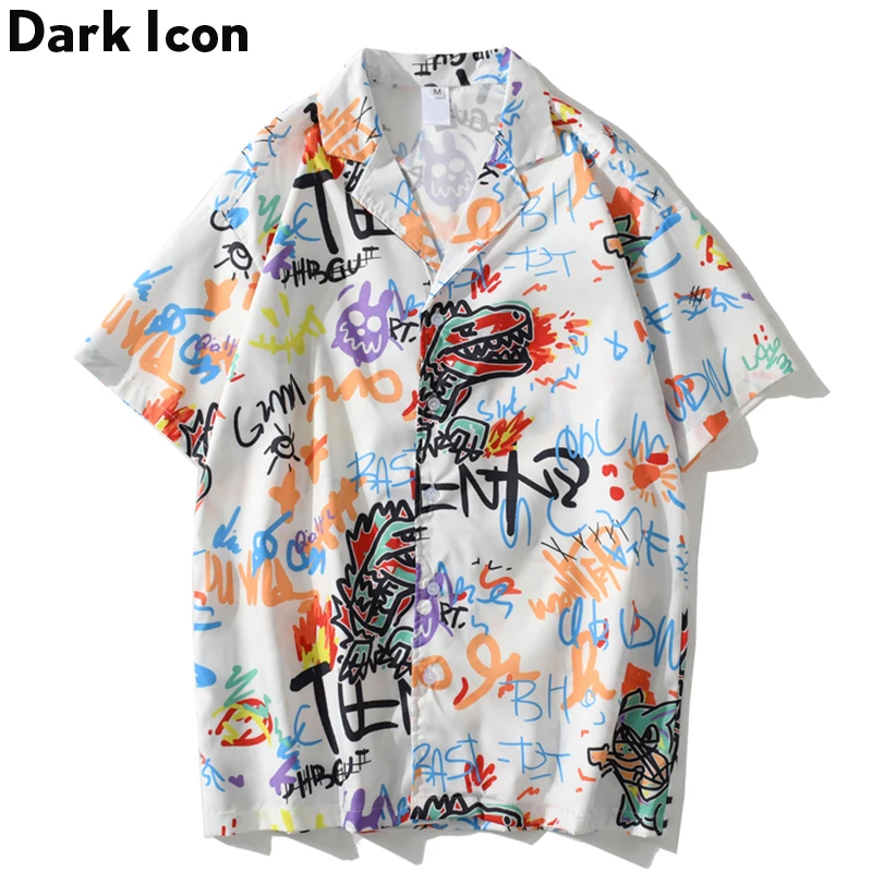 .Gallery for DARK ICON Dinosaur Graffiti Hip Hop Shirt For Men Short Sleeve Fashion Street Shirt Male Clothing