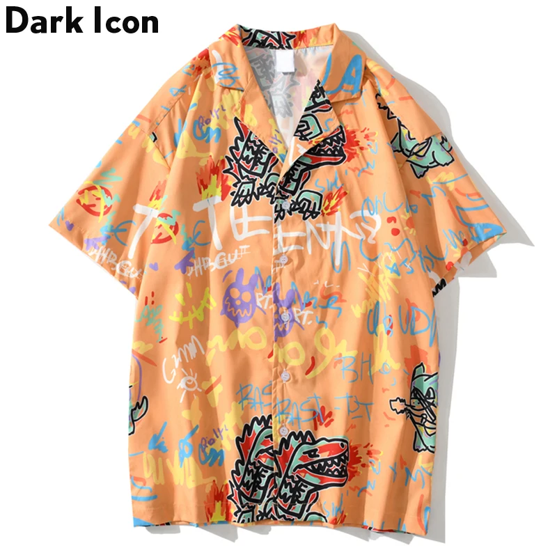 Chance Description for DARK ICON Dinosaur Graffiti Hip Hop Shirt For Men Short Sleeve Fashion Street Shirt Male Clothing