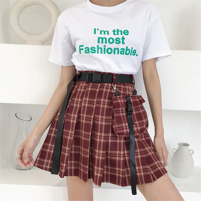 .Pictures for Fashion Summer Women Pleated Skirts High Waist A-Line Sweet Ladies Girls Mini Skirt Harajuku Streetwear Women's Plaid Skirt
