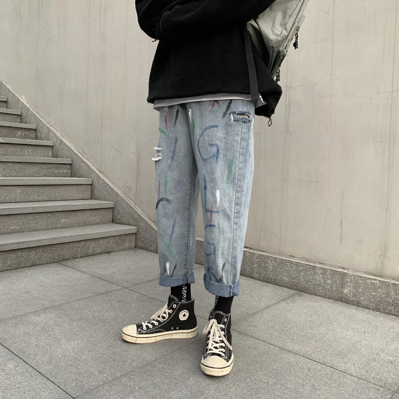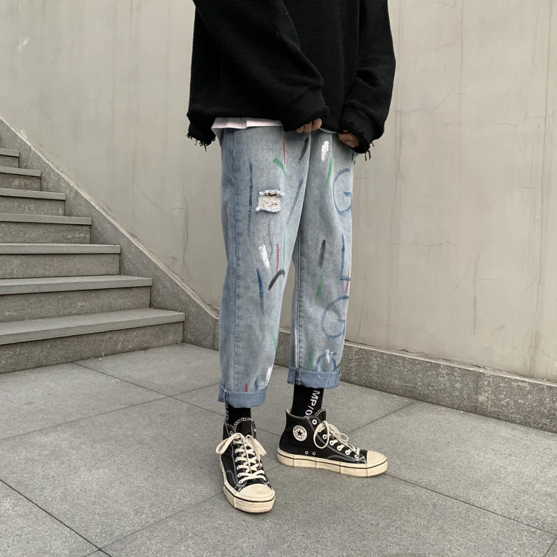 0 Response to "Cheap Hole Jeans Men's Fashion Graffiti Printed Casual Straight Jean Pants Men Streetwear Wild Loose Hip Hop Denim Trousers Mens S-3XL Free Shipping"