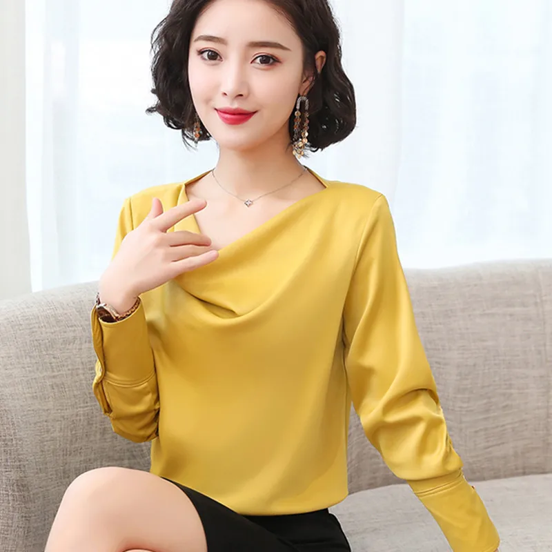 .Gallery for Korean Fashion Silk Women Blouses Elegant Woman Satin Solid Blouse V Neck Shirt Plus Size 4XL Blusas Mujer De Moda Women Blouses